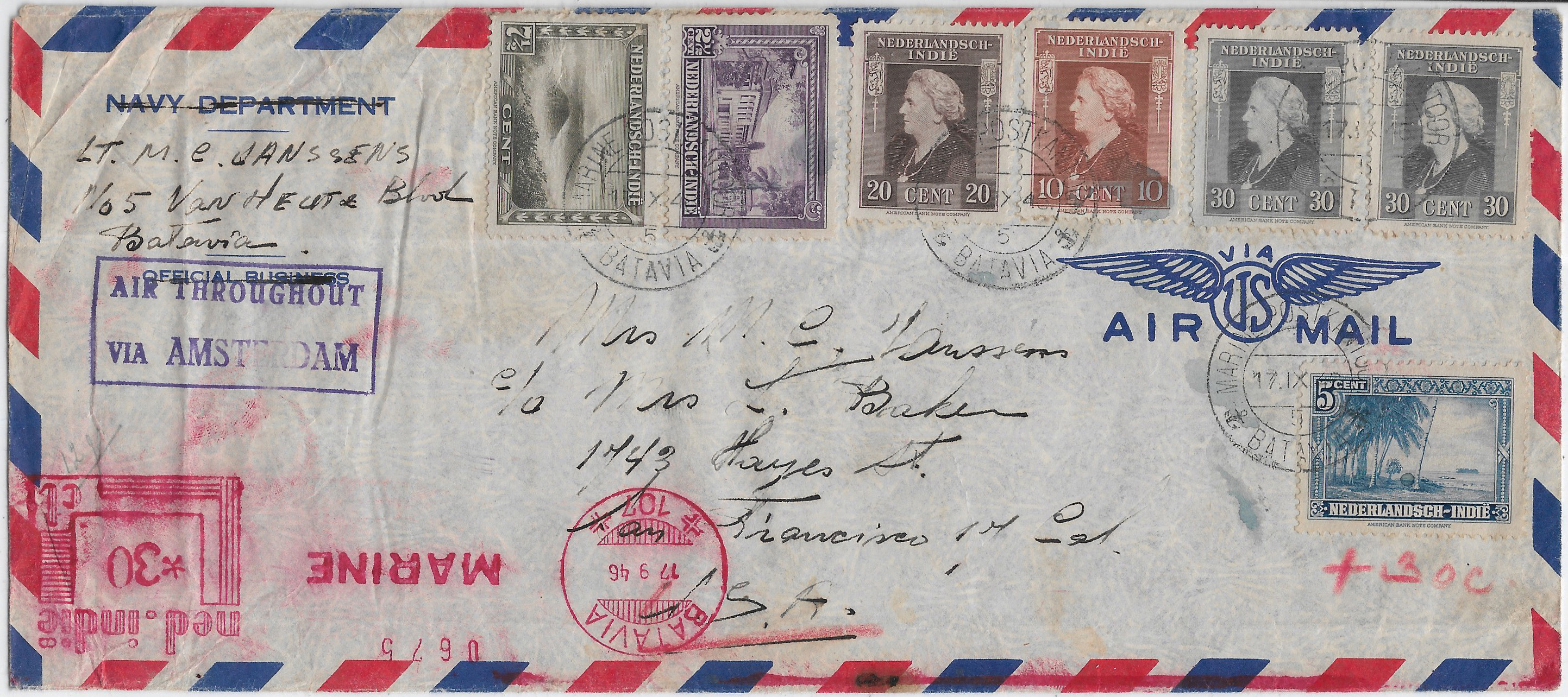 | 1946 Batavia, Dutch East Indies to San Francisco, Ca Airmail KLM airlines via Amsterdam. | Price: $25.00