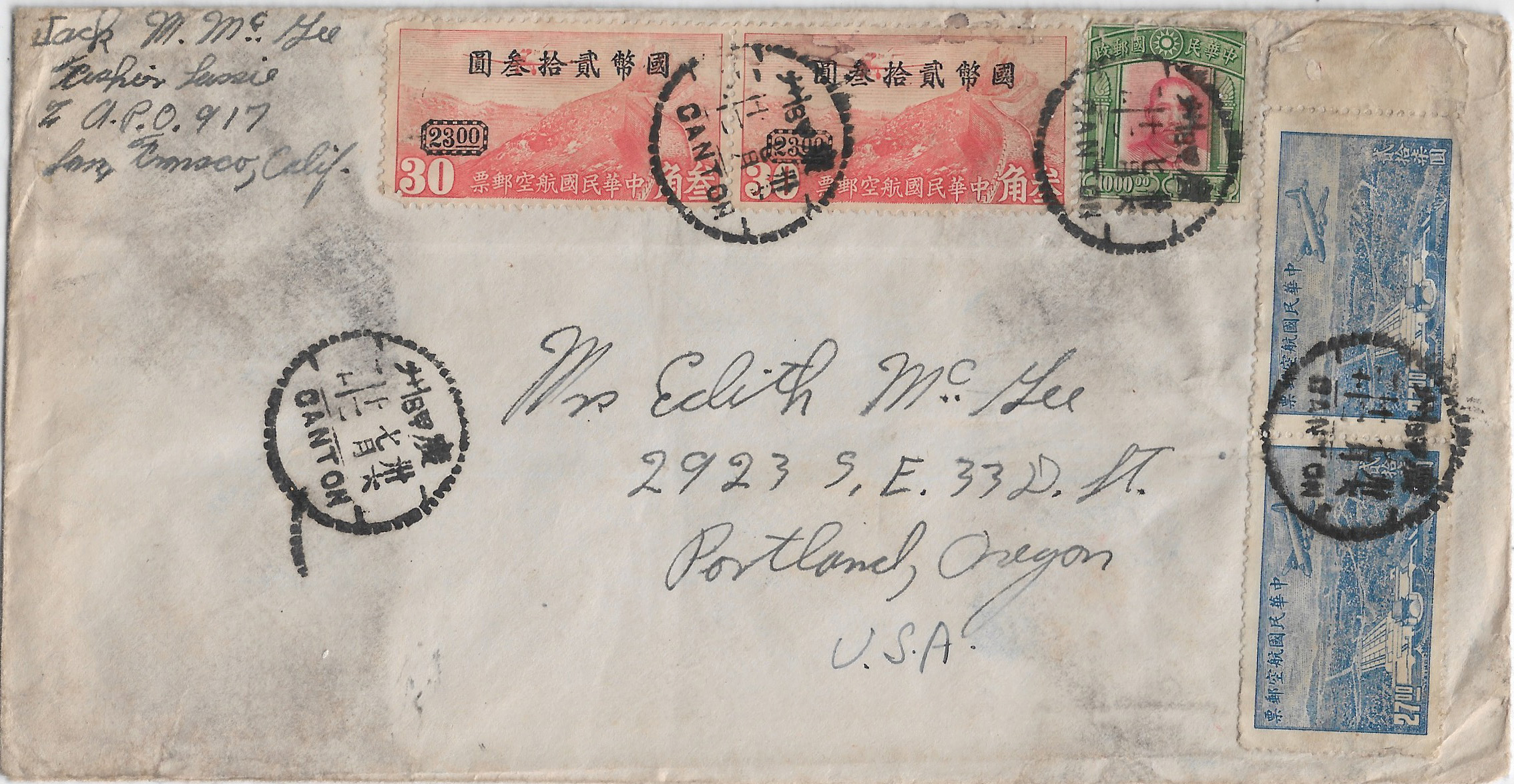 | 1946 APO 917, Canton, China to Portland, Or. | Price: $25.00