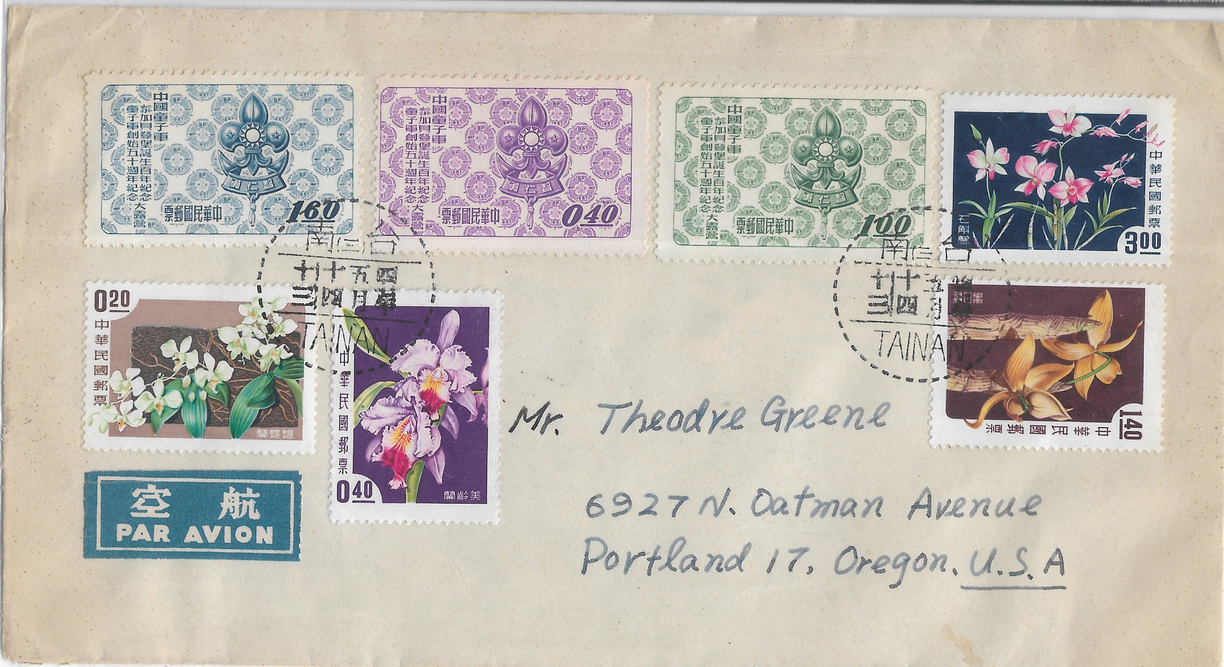 | 195x Tainan, Taiwan to Portland, Or Airmail Scout issues used. #10. | Price: $10.00