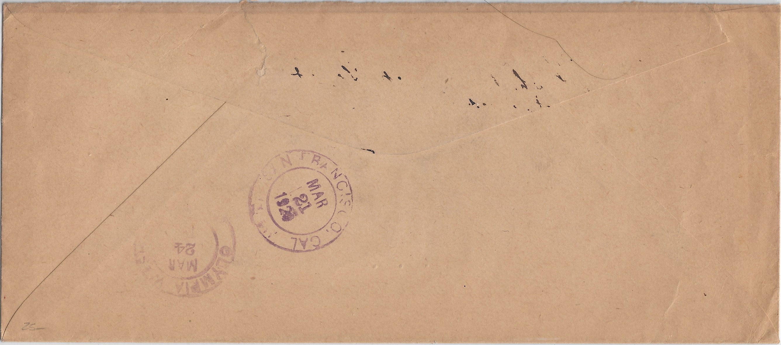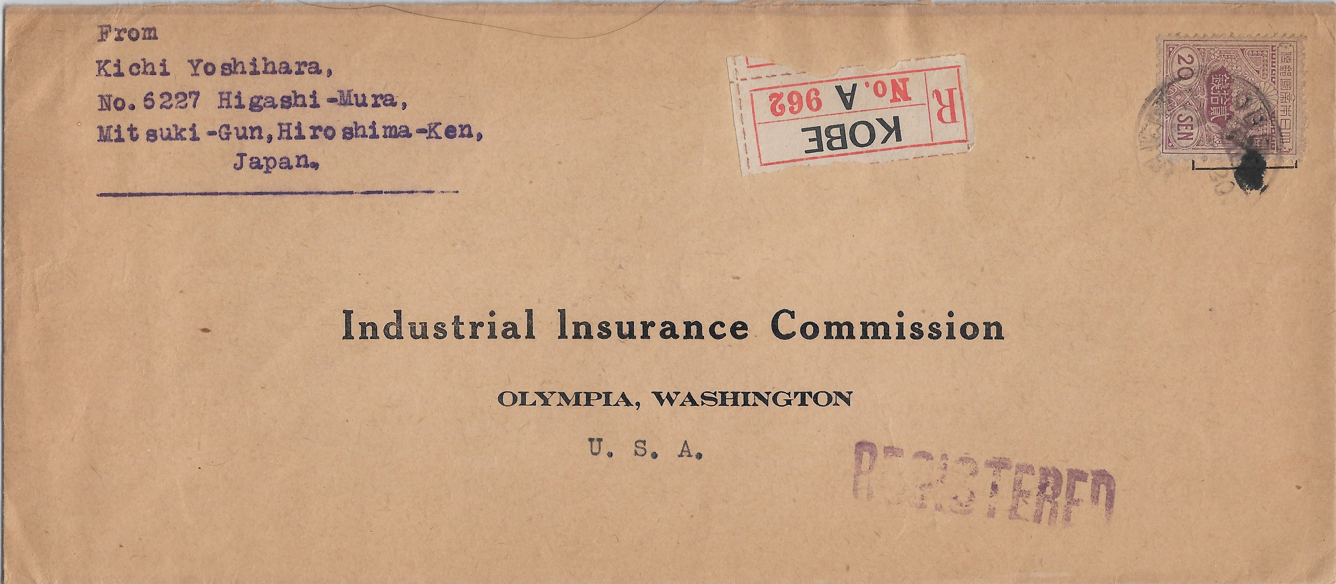| 1920 Kobe, Japan to Olympia, Wa Registered. #10 back stamped San Francisco & Olympia. | Price: $25.00