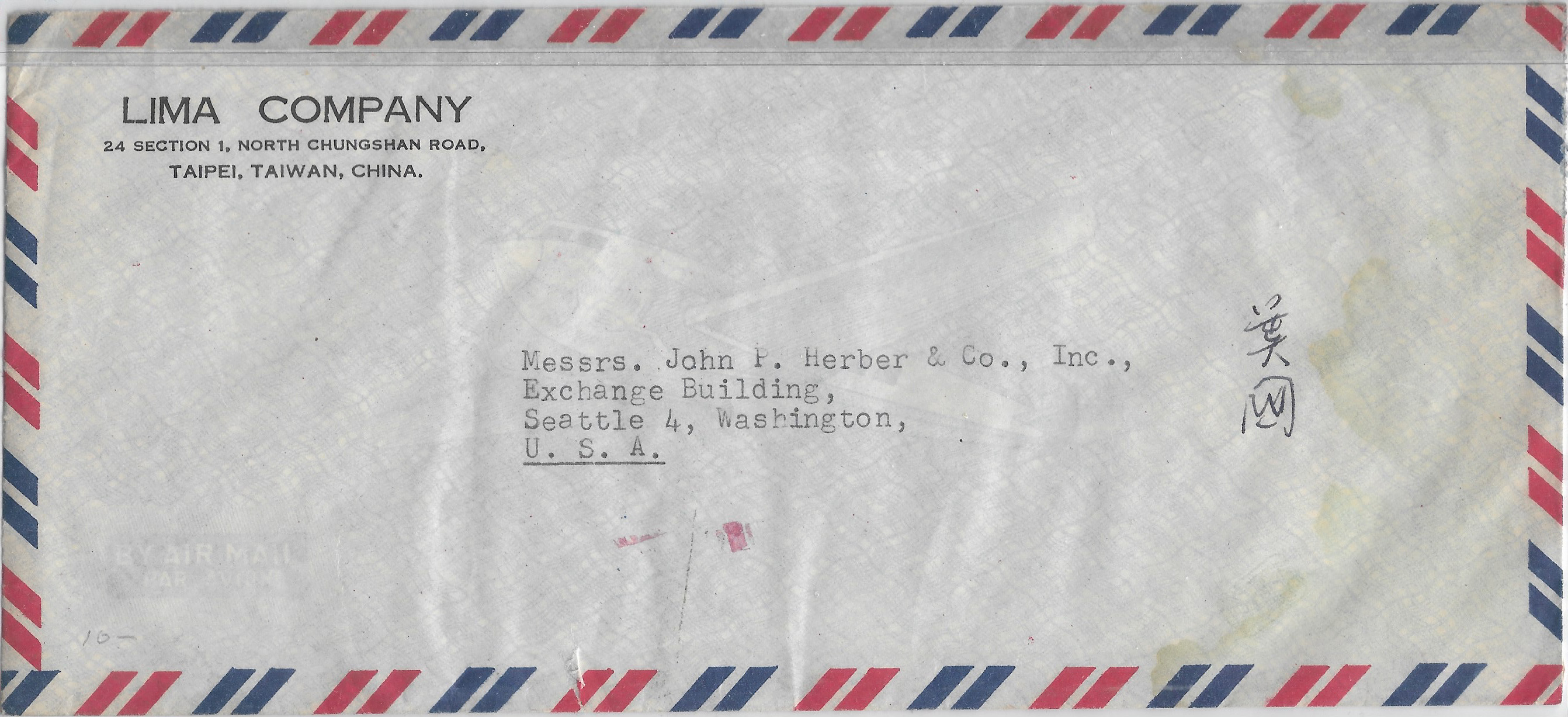 | 1966 Taipei, Taiwan to Seattle, Wa Airmail. #10. | Price: $15.00