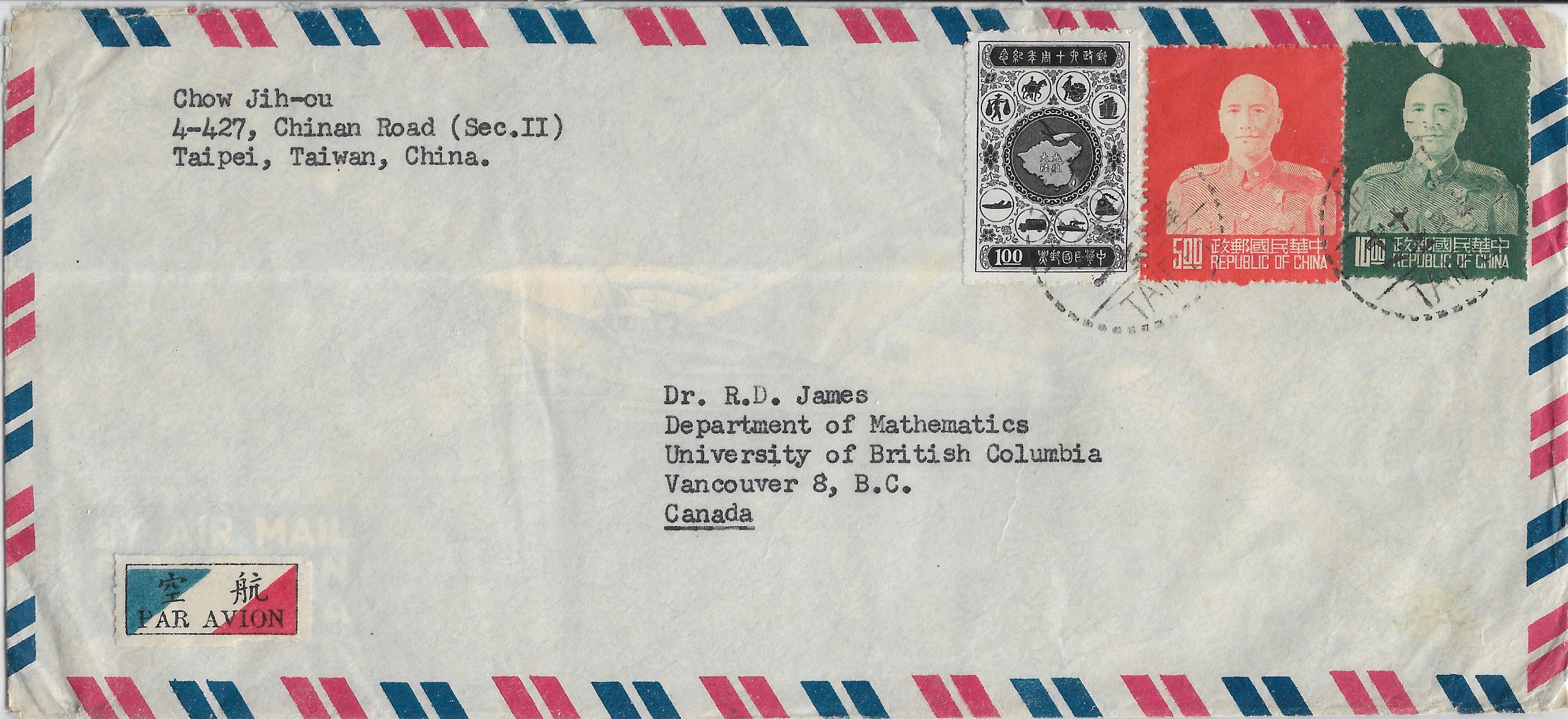 | 195x Teipei, Taiwan to Vancouver, Canada Airmail. | Price: $25.00