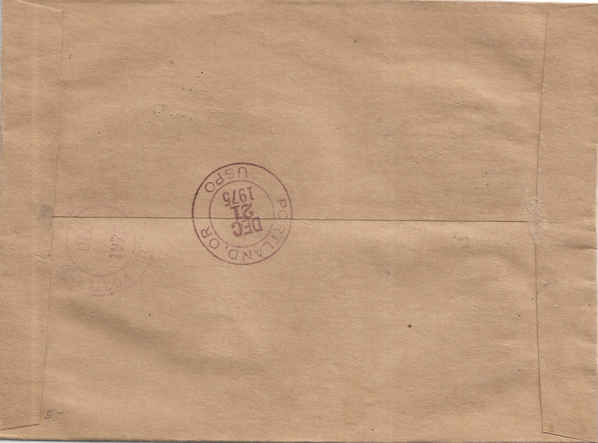 | 1975 Taipei, Taiwan to Portland, Or Registered. back stamped Portland. | Price: $5.00