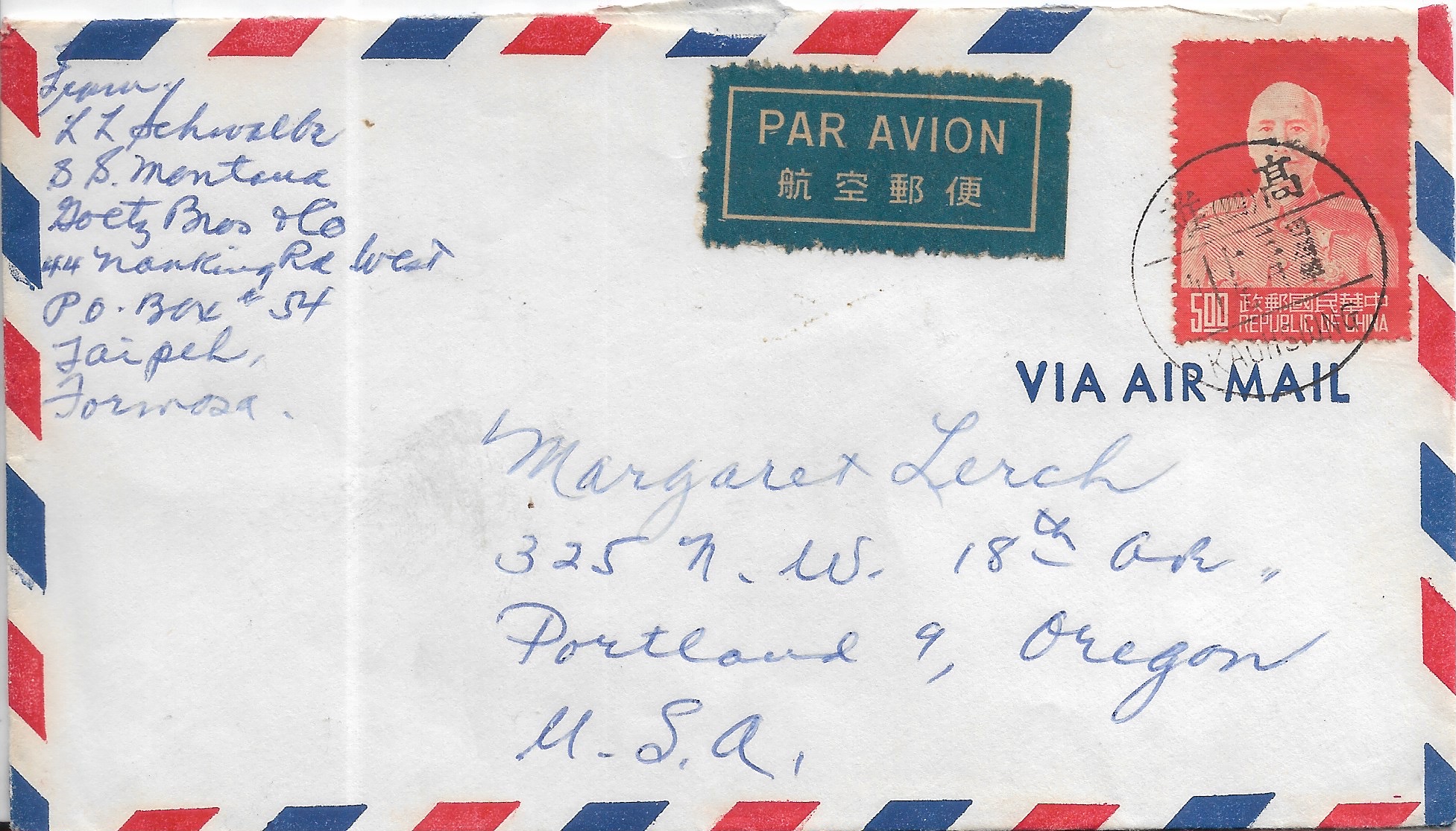 | 1958 Tainan, Taiwan to Portland, Or Airmail. | Price: $10.00