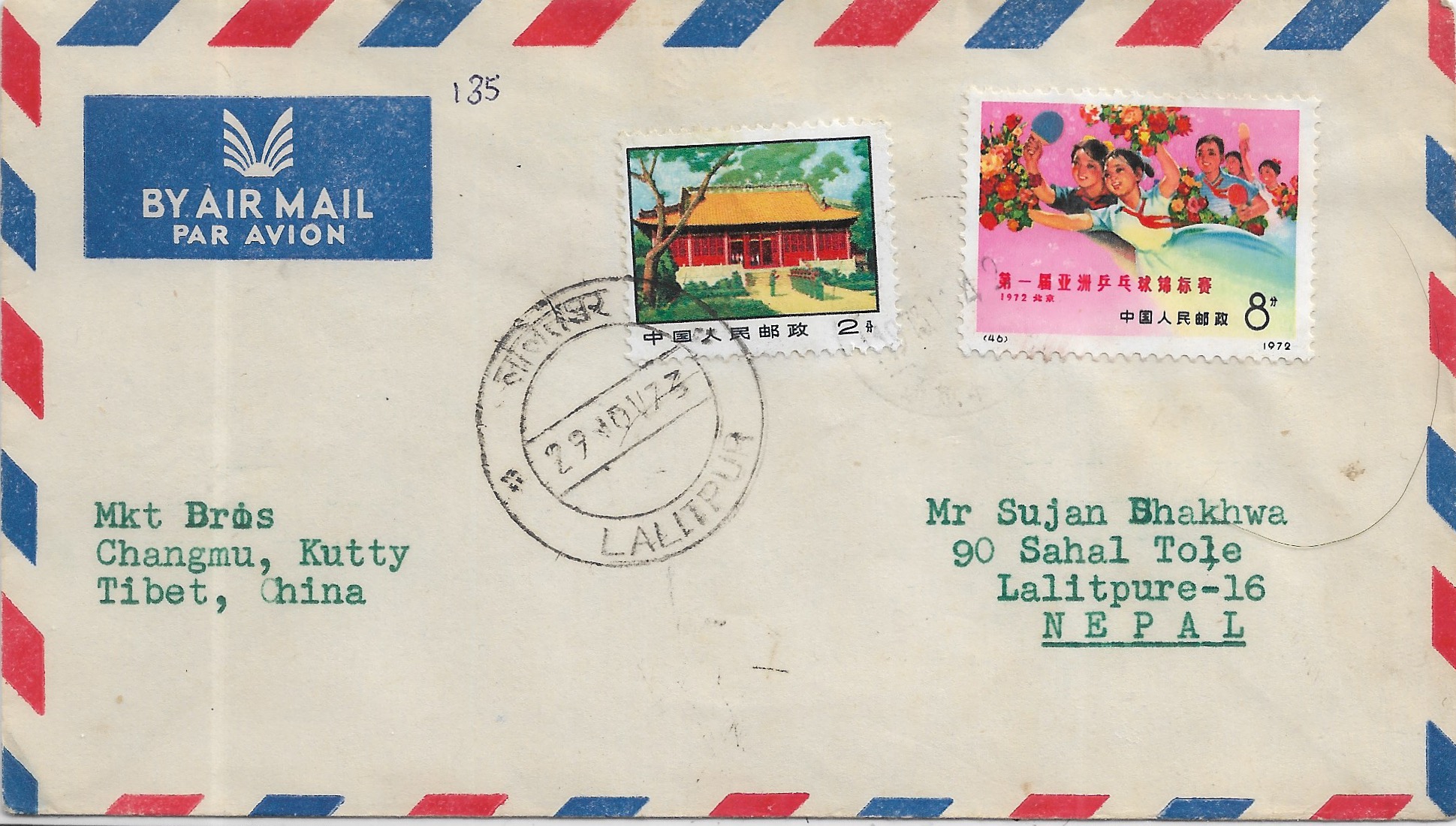 | 1973 Tibet, China to Lalitpure, Nepal Airmail. | Price: $40.00