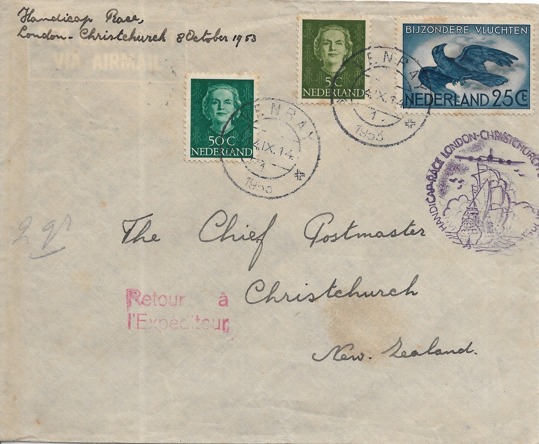 | 1953 Venray, Netherlands to Christchurch, New Zealand, RTS. back stamped Christchurch. | Price: $15.00