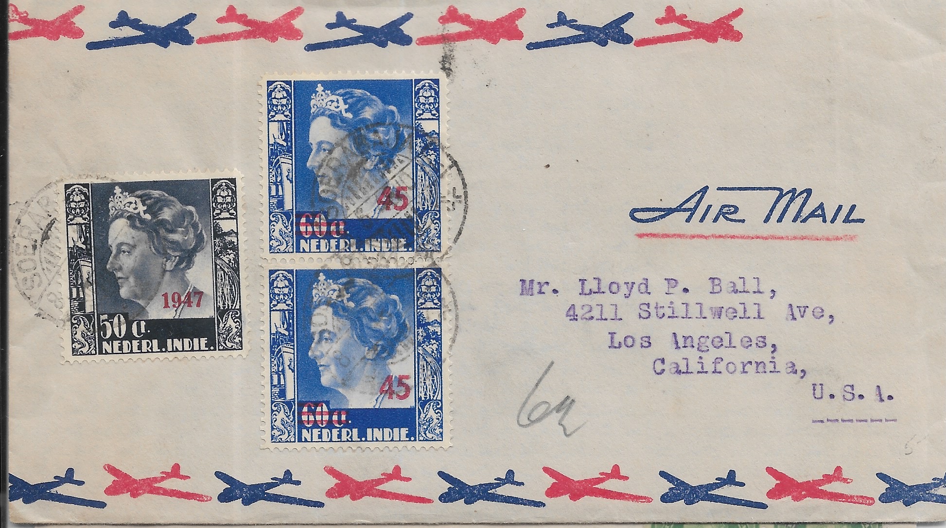 | 1947 Soerabaja, Dutch East Indies to Los Angeles, Ca Airmail. | Price: $15.00