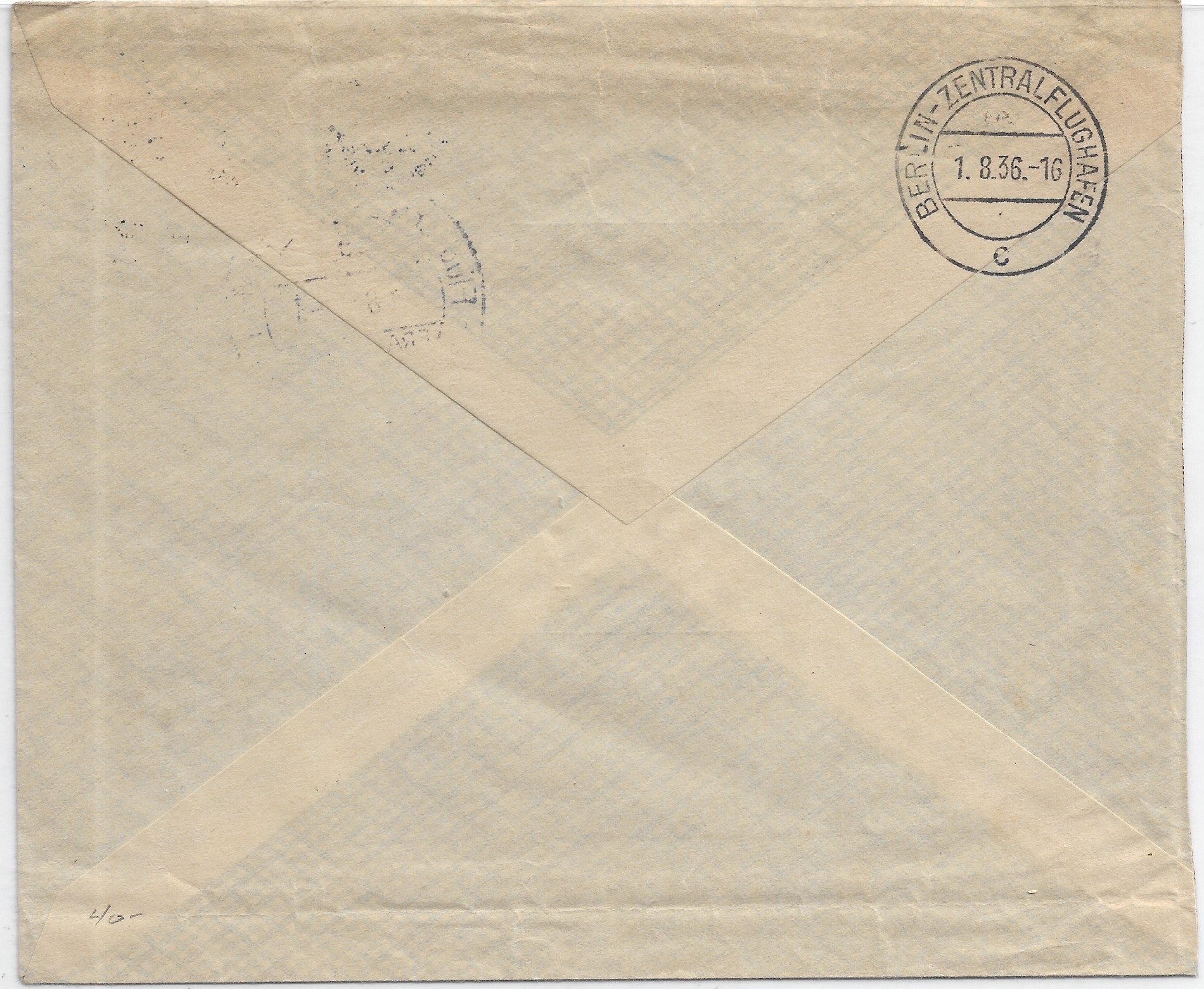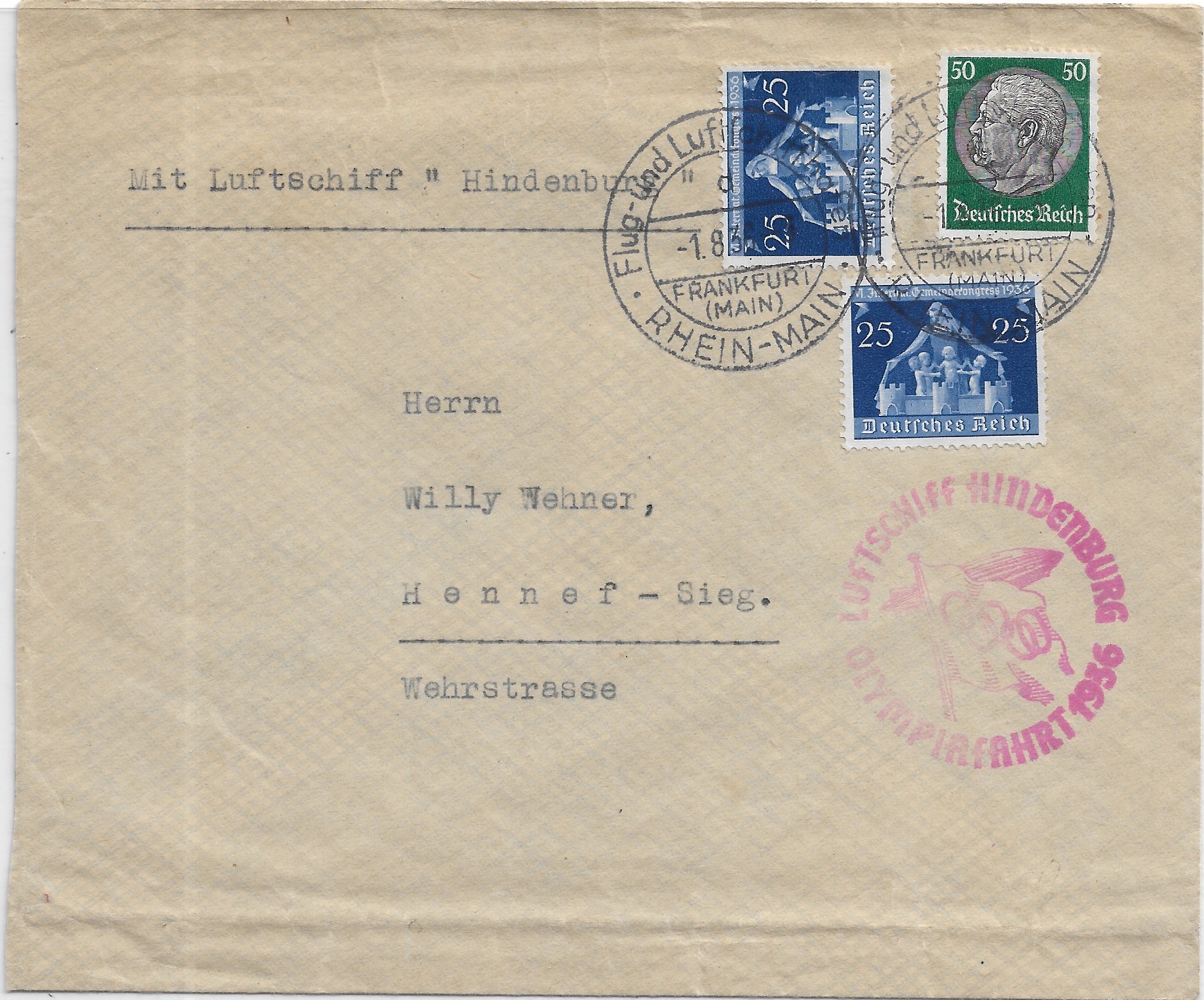 | 1936 Hindenburg Olympic Flight, Frankfurt-Main to Berlin. back stamped Berlin. | Price: $40.00