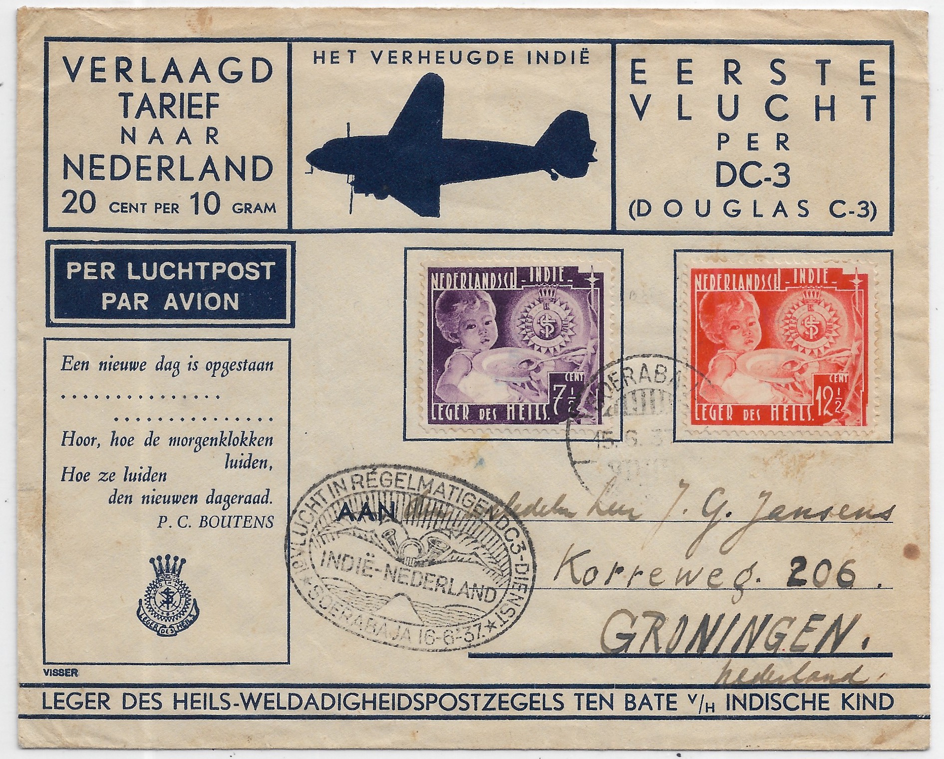 | 1937 Soerabaja, Dutch East Indies to Groningen, Netherlands 1st Flight. | Price: $30.00