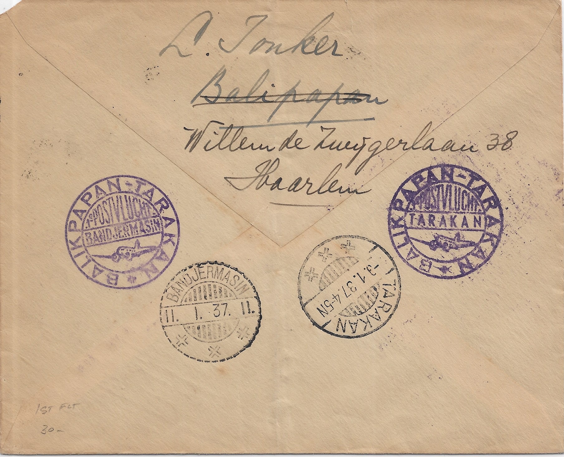 | 1936 Balikpapan to Bandjarmasin, Dutch East Indies 1st Flight. back stamped Balikpapan & Tarakan. | Price: $30.00