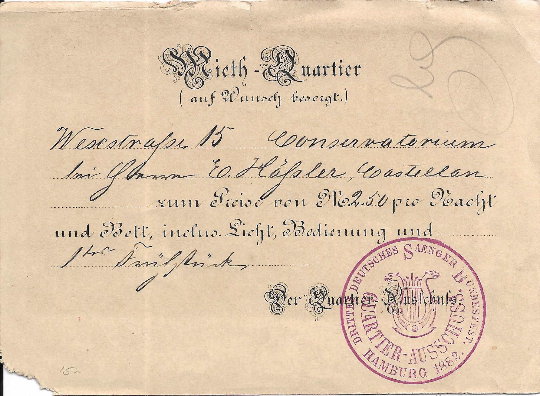 | 1882 Bambura, Germany Singers Association Festival card. | Price: $15.00