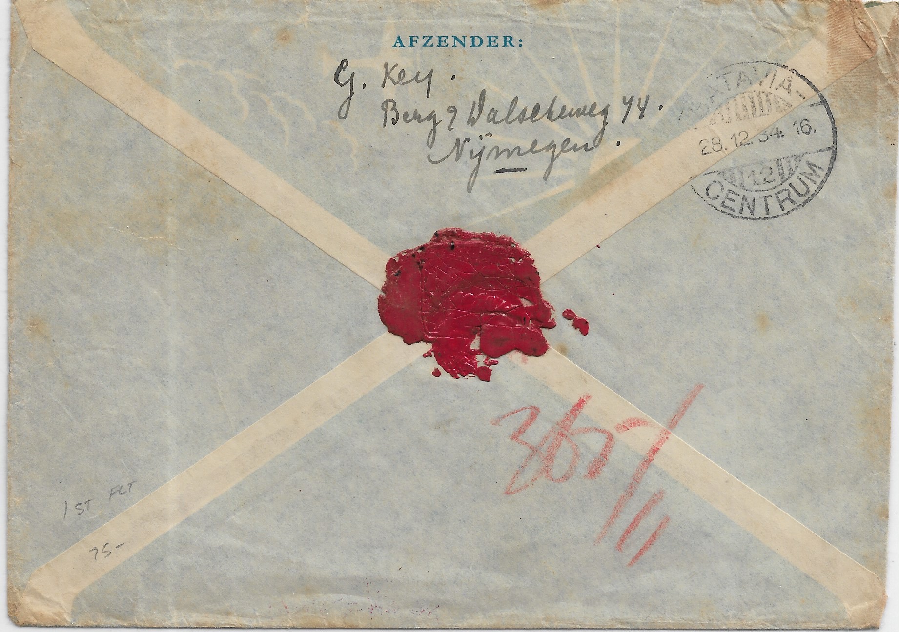 | 1934 Nijmegen to Batavia, Dutch East Indies Registered 1st Flight. back stamped Batavia. | Price: $75.00