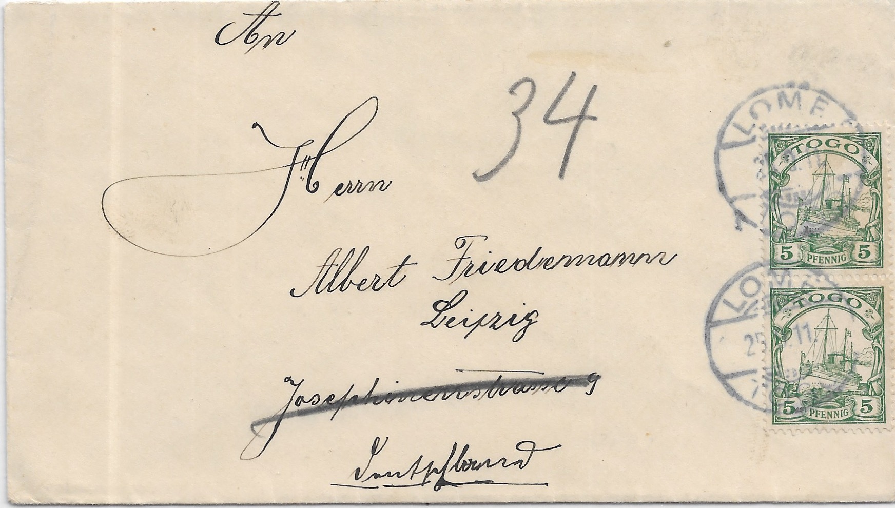 1909 Anecho, German Togo to Lankurity, Germany. no back stamps.