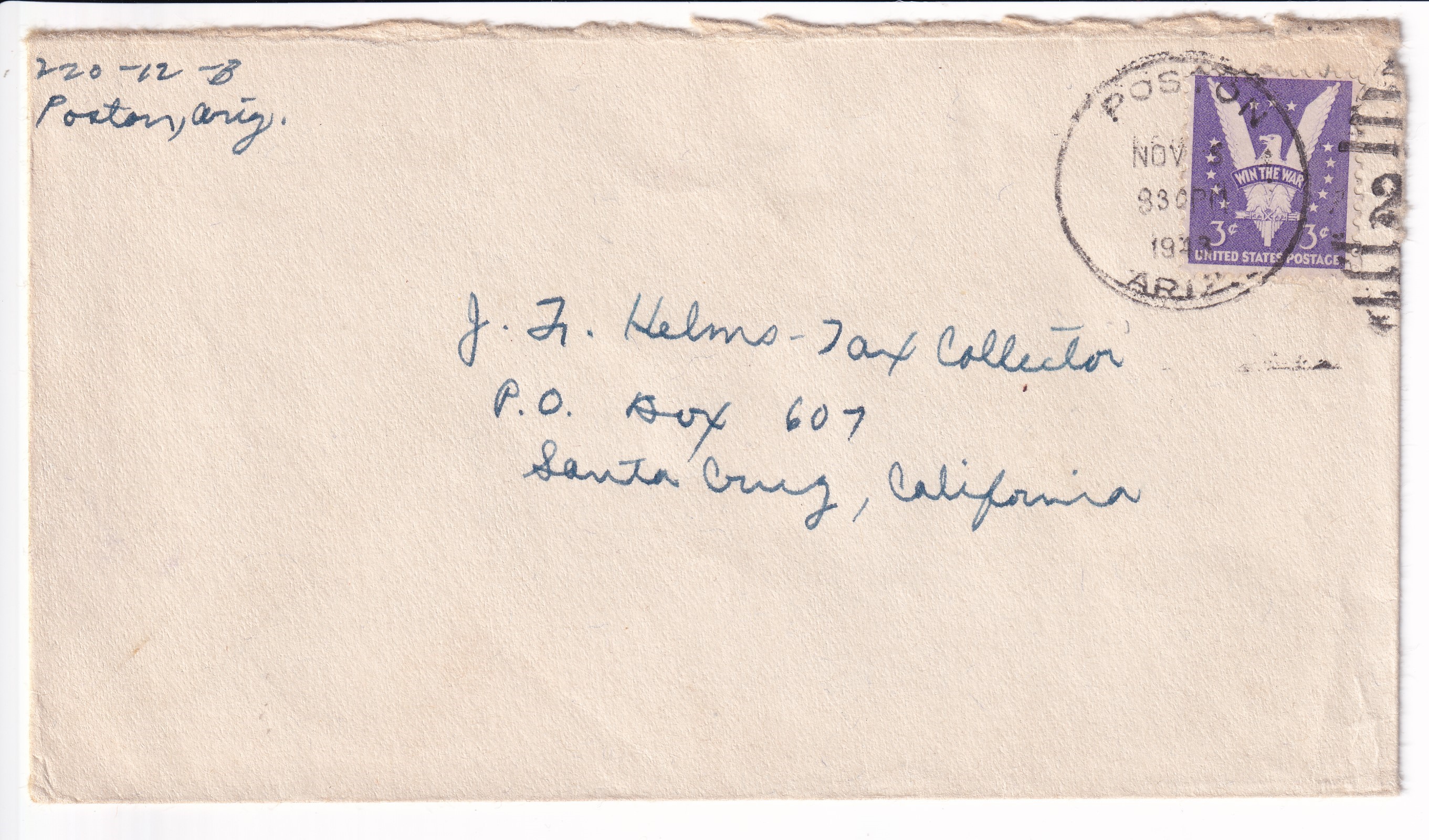 1945 Japanese Internment Camp, Poston, AZ to Santa Cruz, Ca.