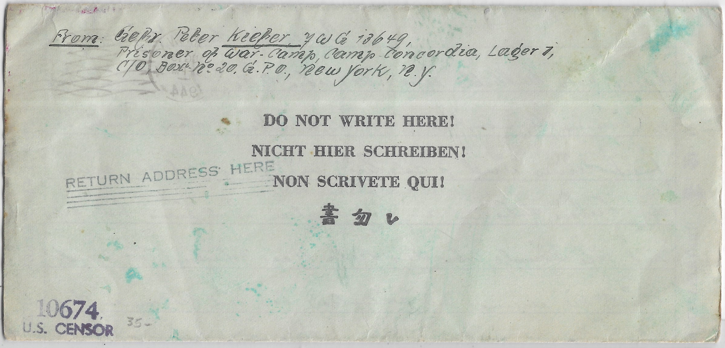 1944 German POW at Camp Concordia, KS to Saar, Germany Dual Censored.