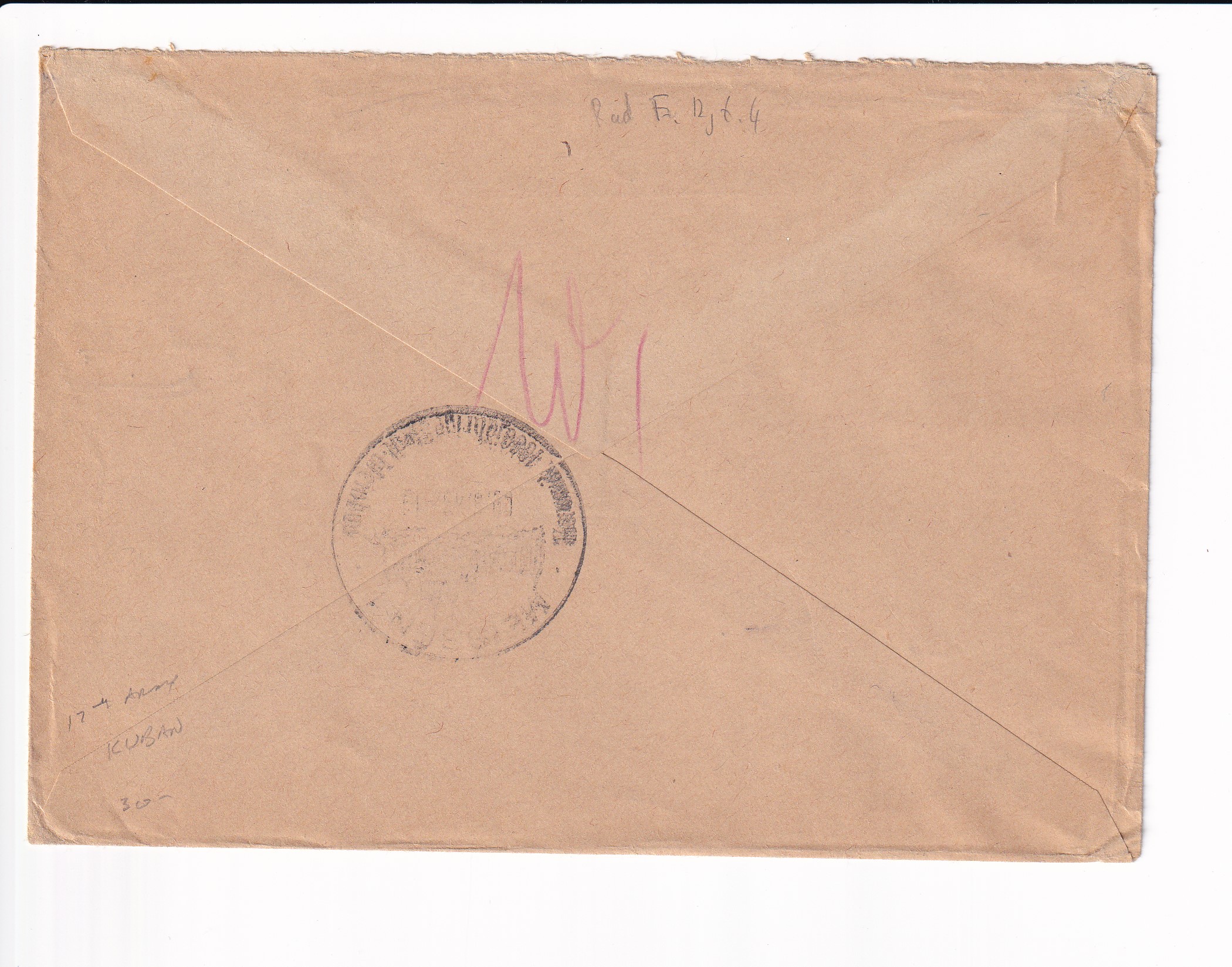 WW1:British: BEF APO S7, Red Triangle Censor Handstamp.
