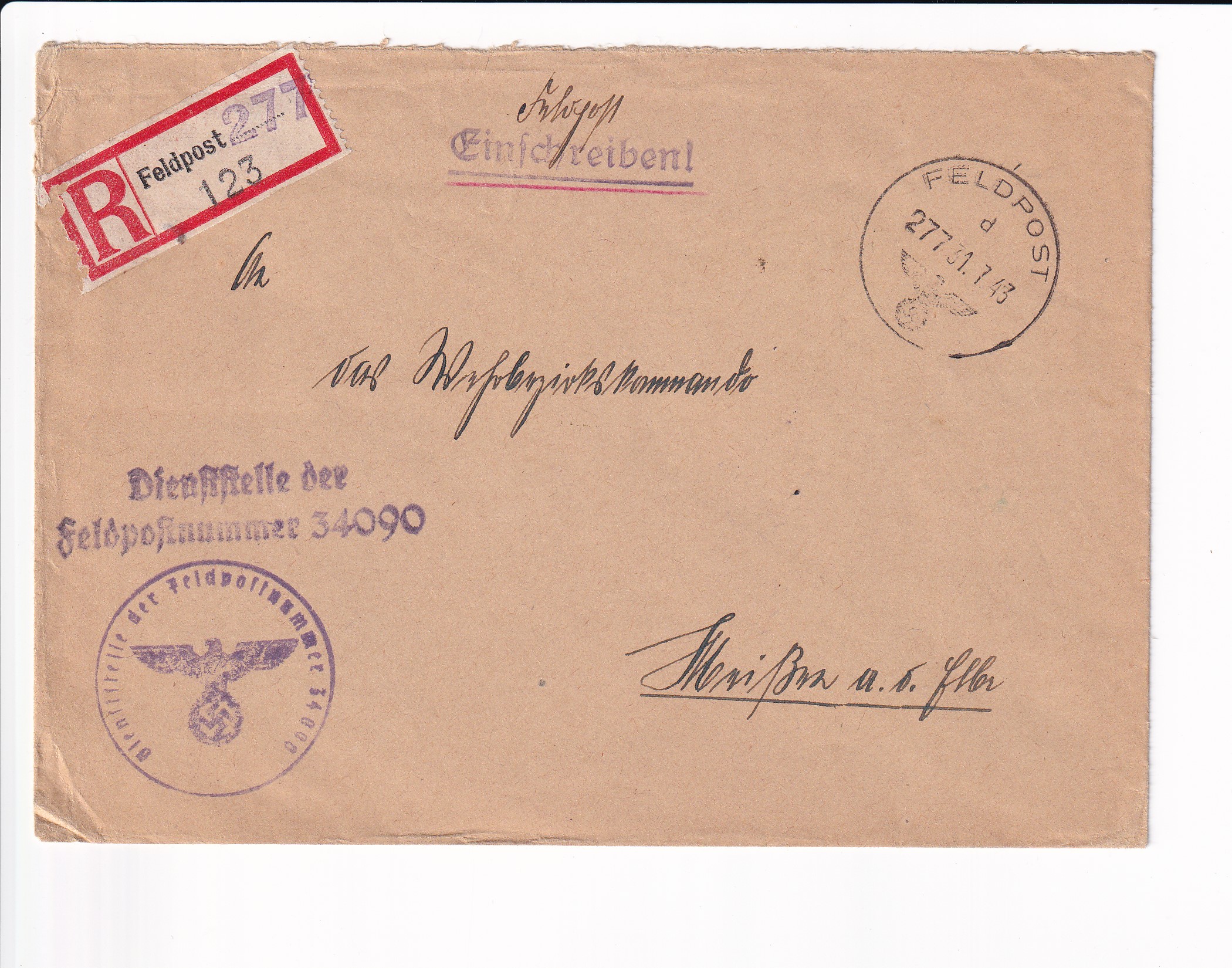 WW2: German Feldpost FP17796, Croatian Division, 369 Infantry to Wien, 1943.