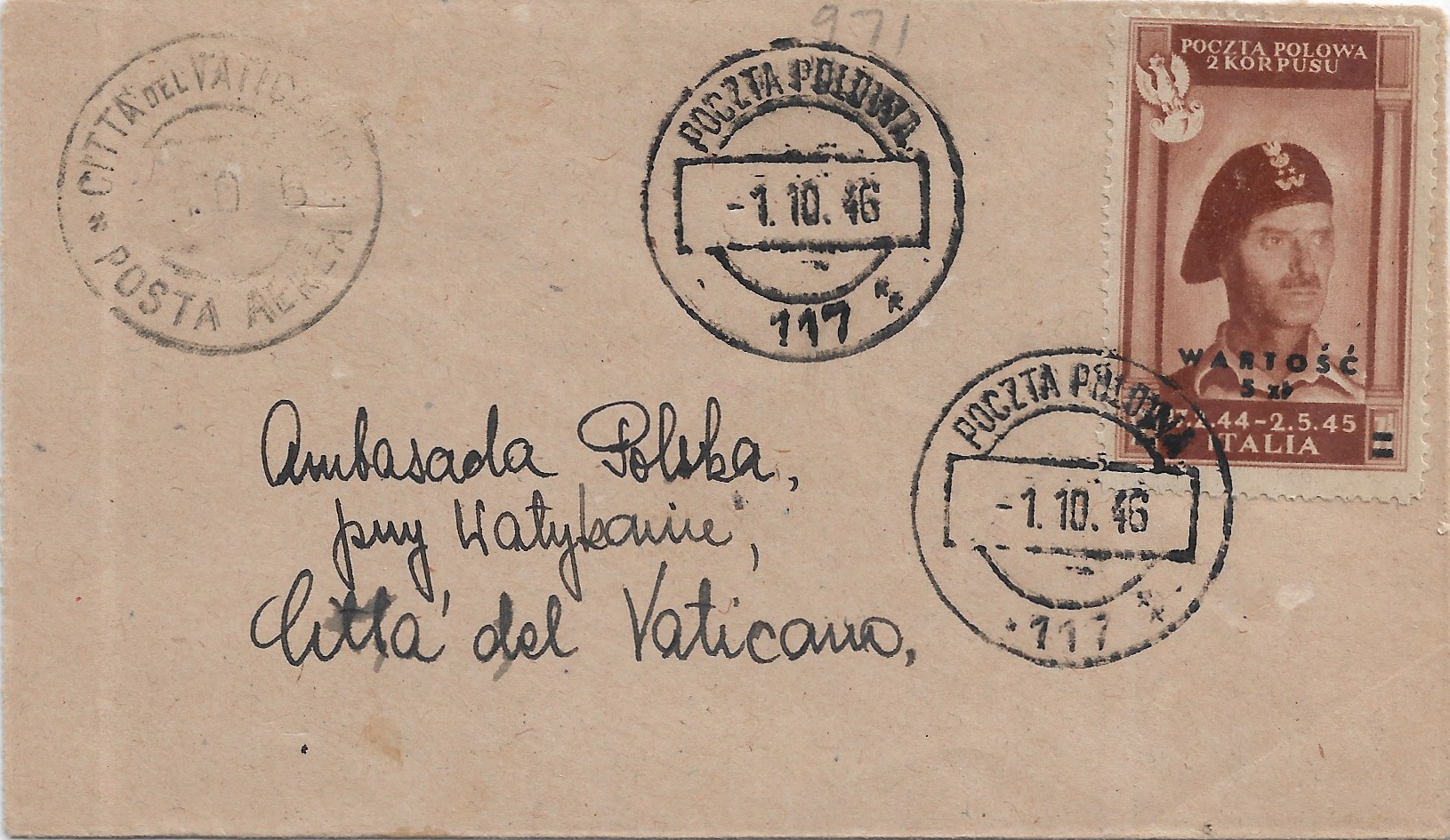 1946 FPO 117, Polish Army in Italy to Vatican City.