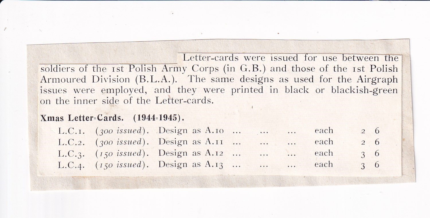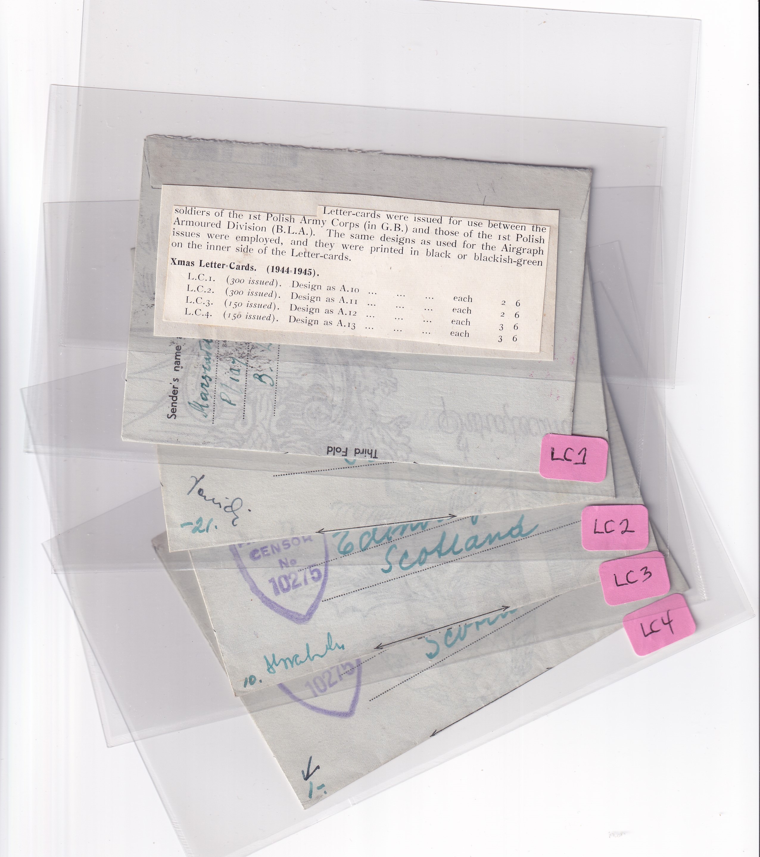 1944 FPO 254, 1st Polish Comp (GB) to 1st Polish Armored Div. 4 different Type of Letter Sheets. Type LC1 & LC2 (300 issued). Type LC3 & LC4 (150 issued).