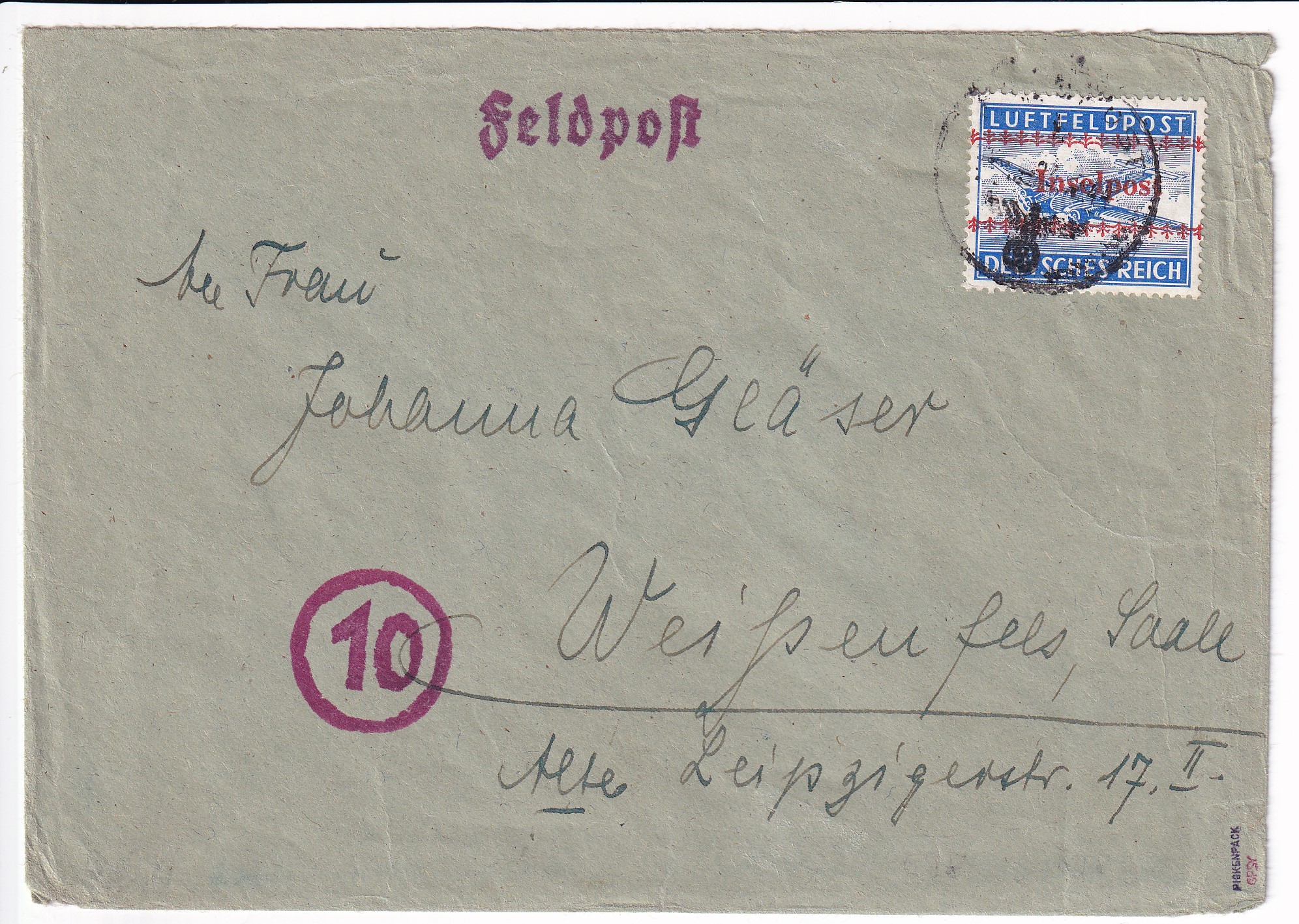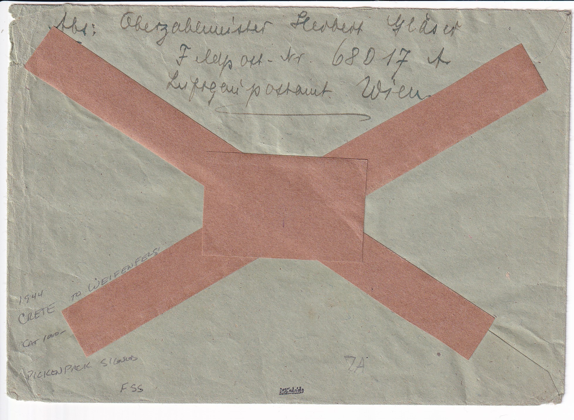 WW2: 1944 German Feldpost, CRETE to Weidenfeld, Germany ( Pickenpack BPP cert). stamps Michel #7A.