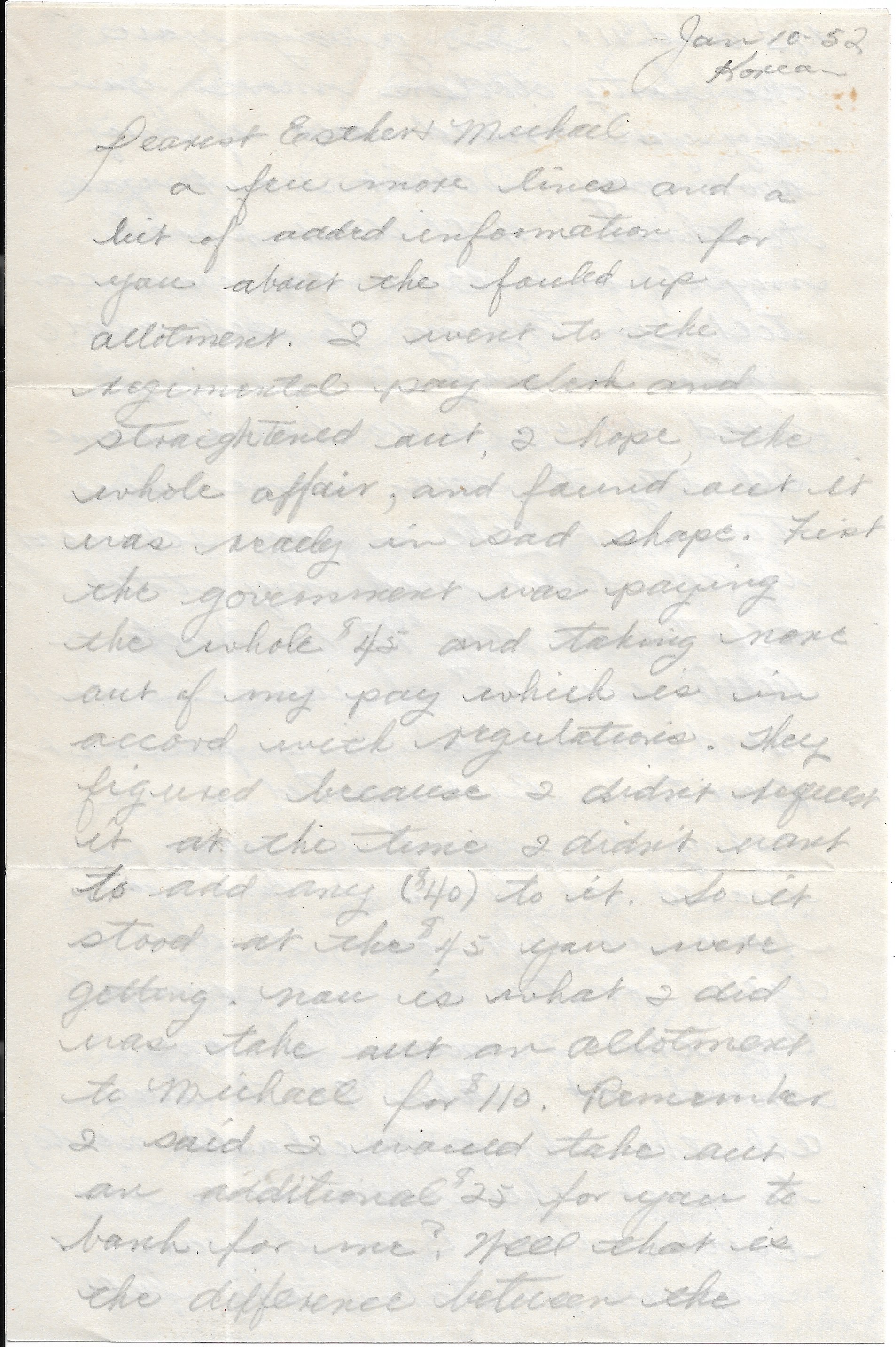 Korean War: 9th Inf Rgt, APO 248, Chun Kok, Korea to Oxford, OH 1954.