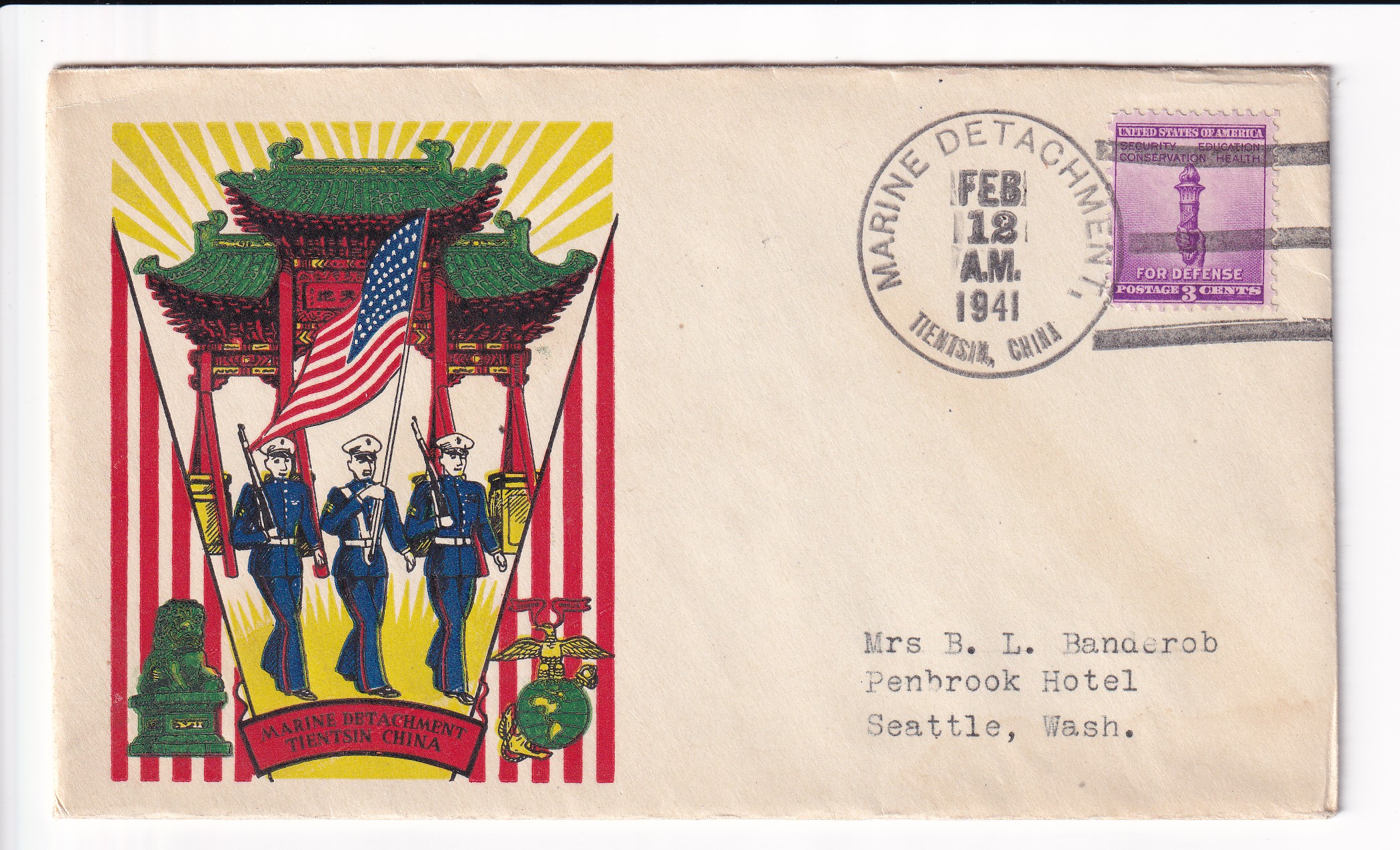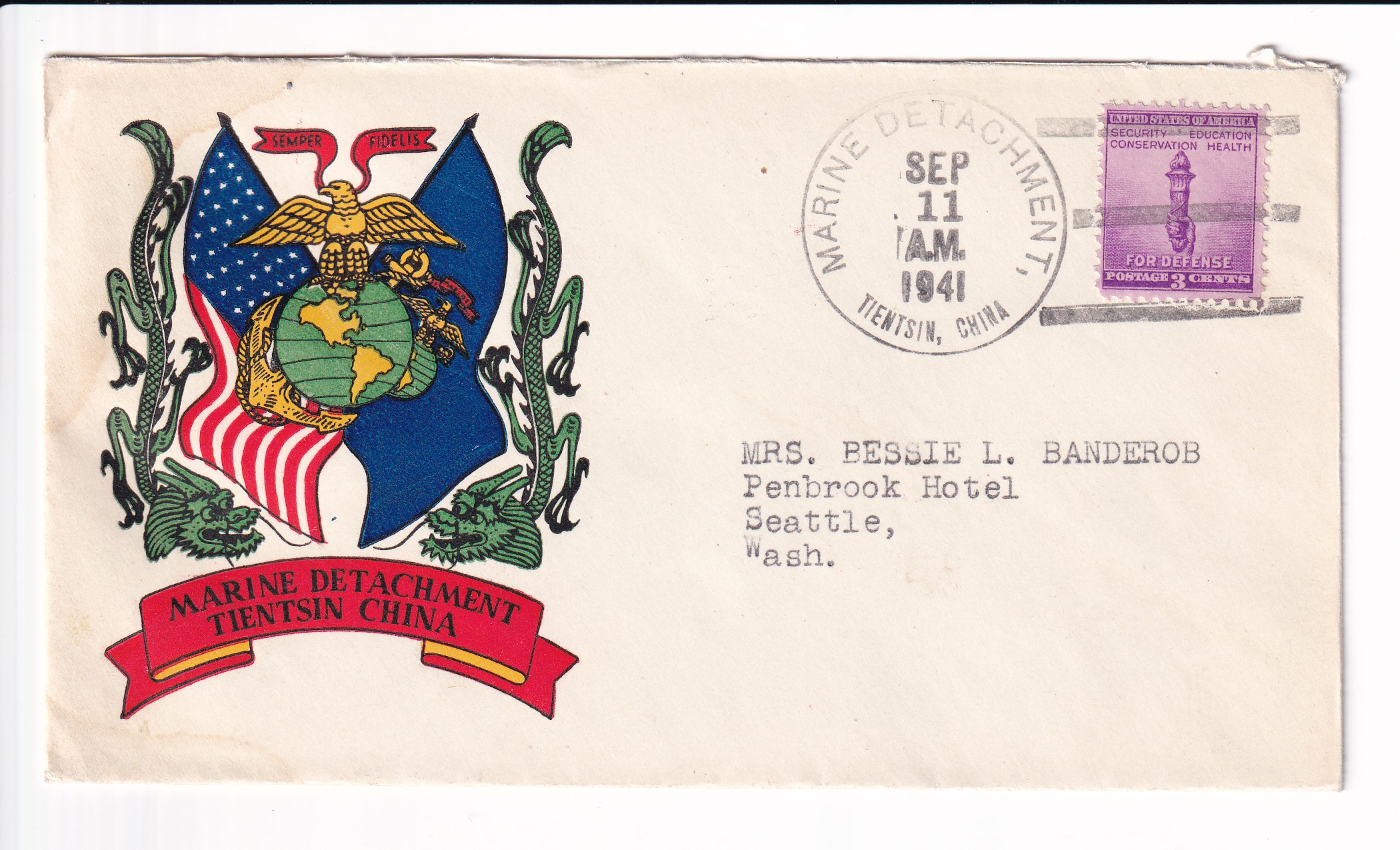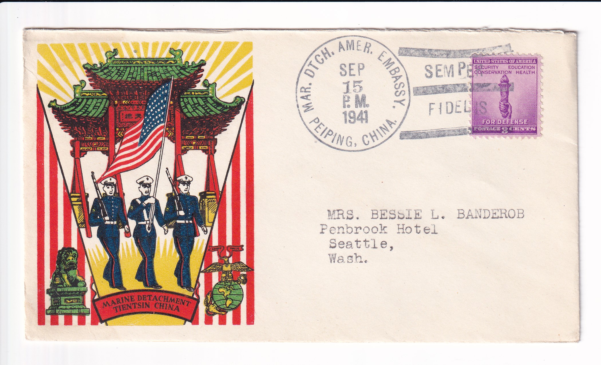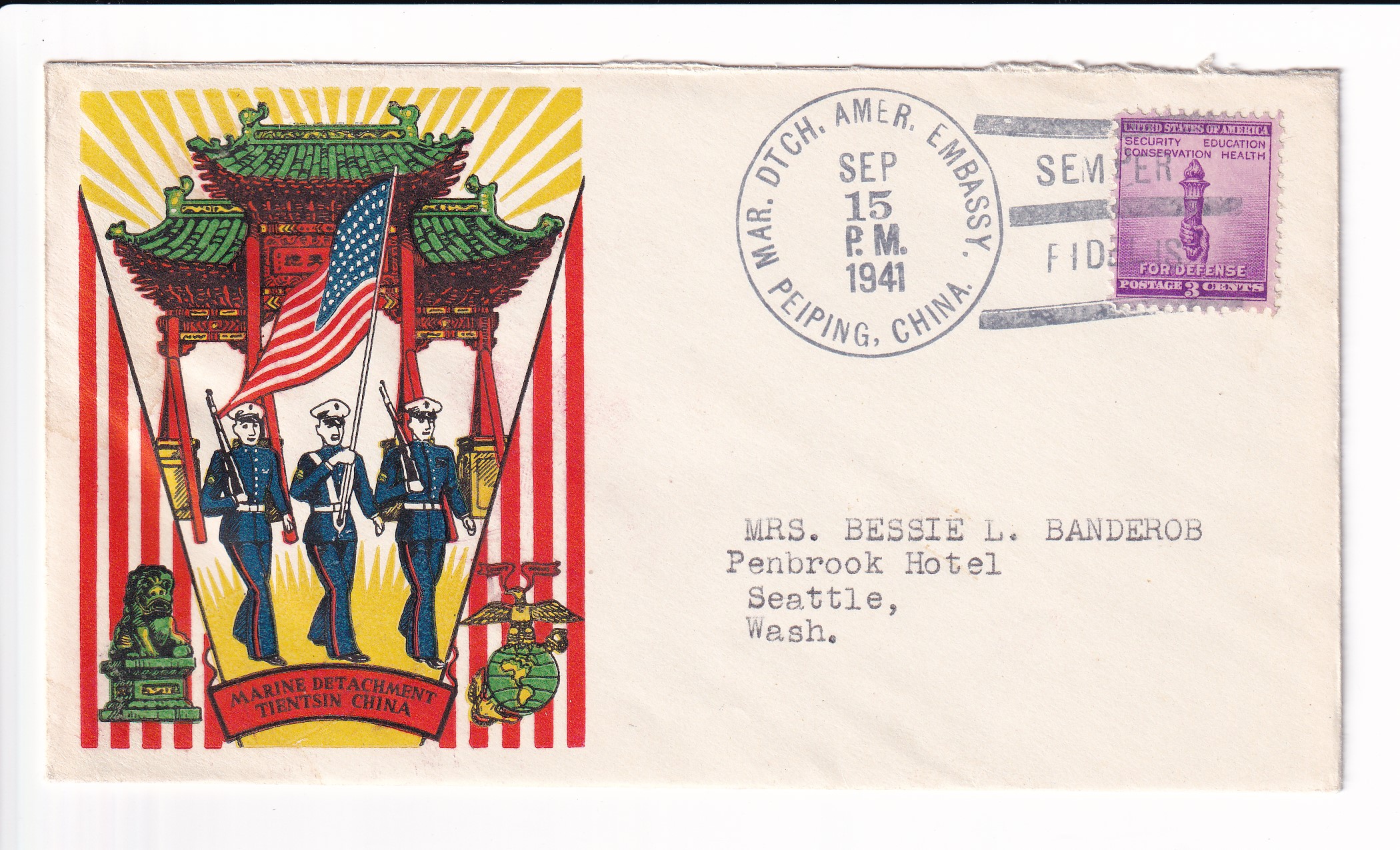 1941 Marine Detachment, American Embassy, Peiping, China to Seattle, Wa.