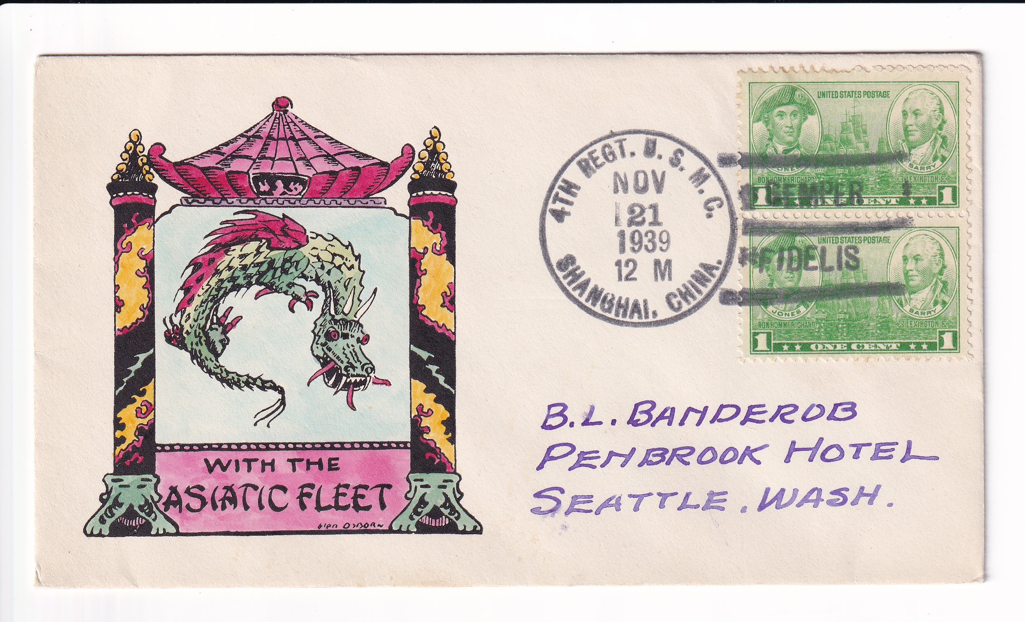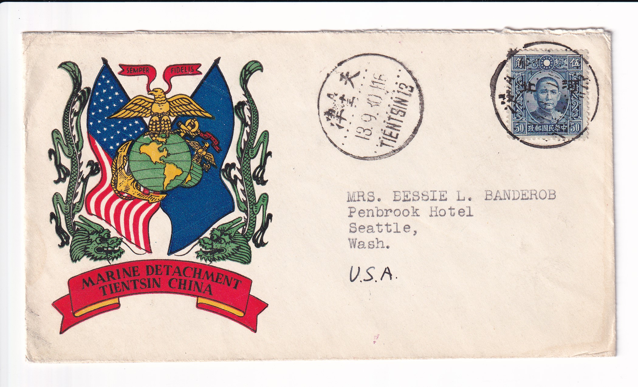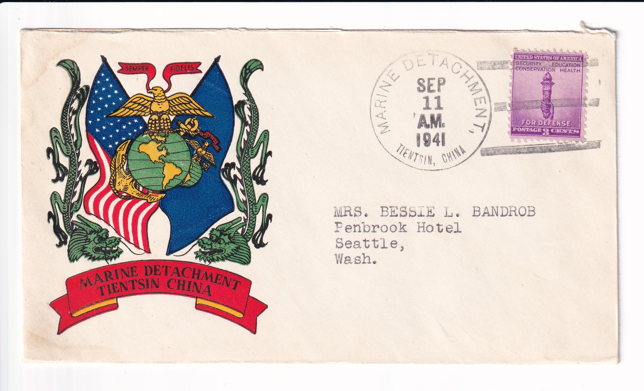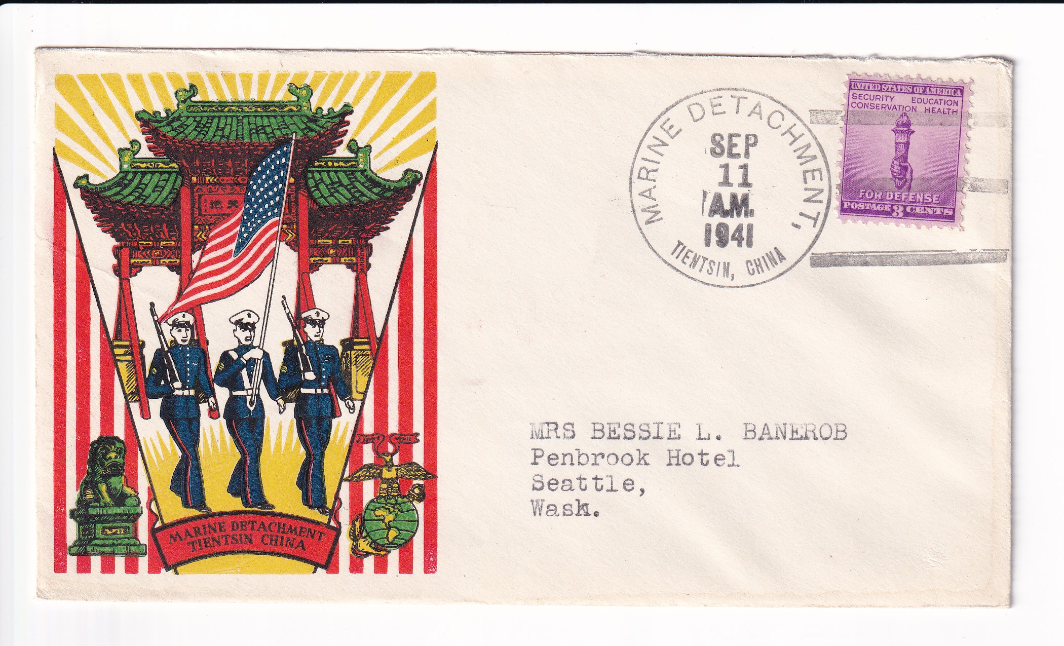 1941 Marine Detachment, American Embassy, Peiping, China to Seattle, Wa.