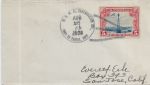 USS Ranger CVA-4 Pearl Harbor, Hawaii to Imperial Beach, Ca 1940, Pacific Clipper, 20c solo 4th Bureau Issue. backstamped Los Angeles, Arcade Annex & Imperial Beach.