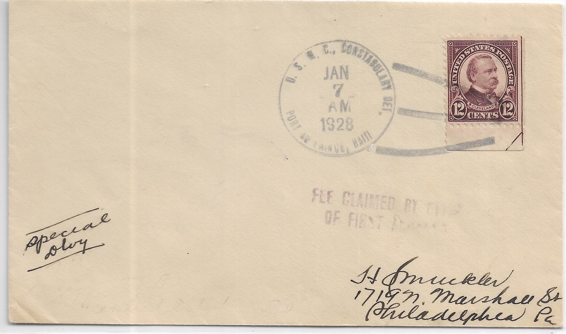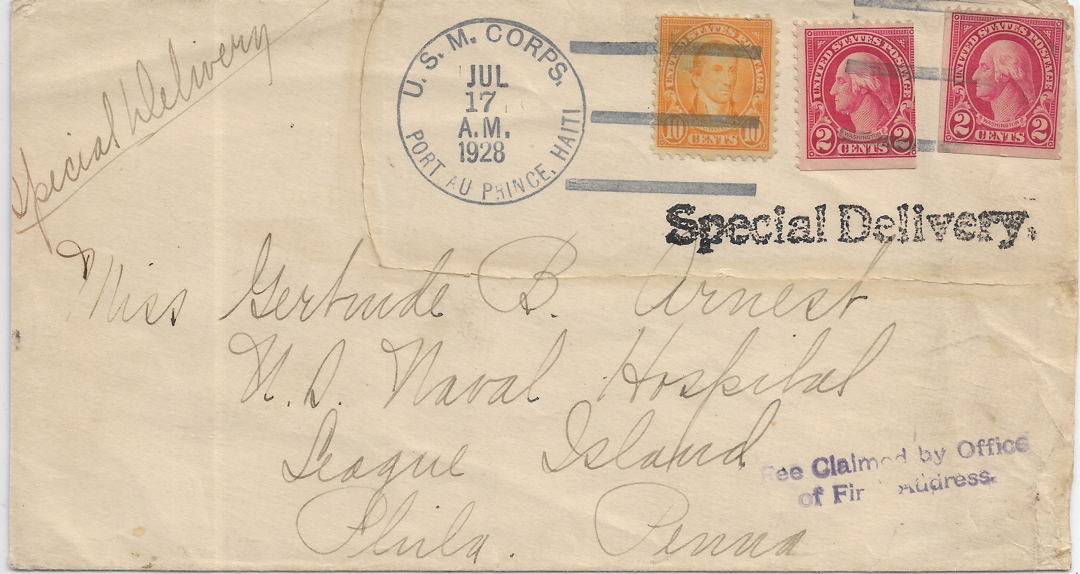 1928 USMC in Port au Prince, Haiti to Philadelphia, Pa Special Delivery solo 12c 4th Bureau issue.