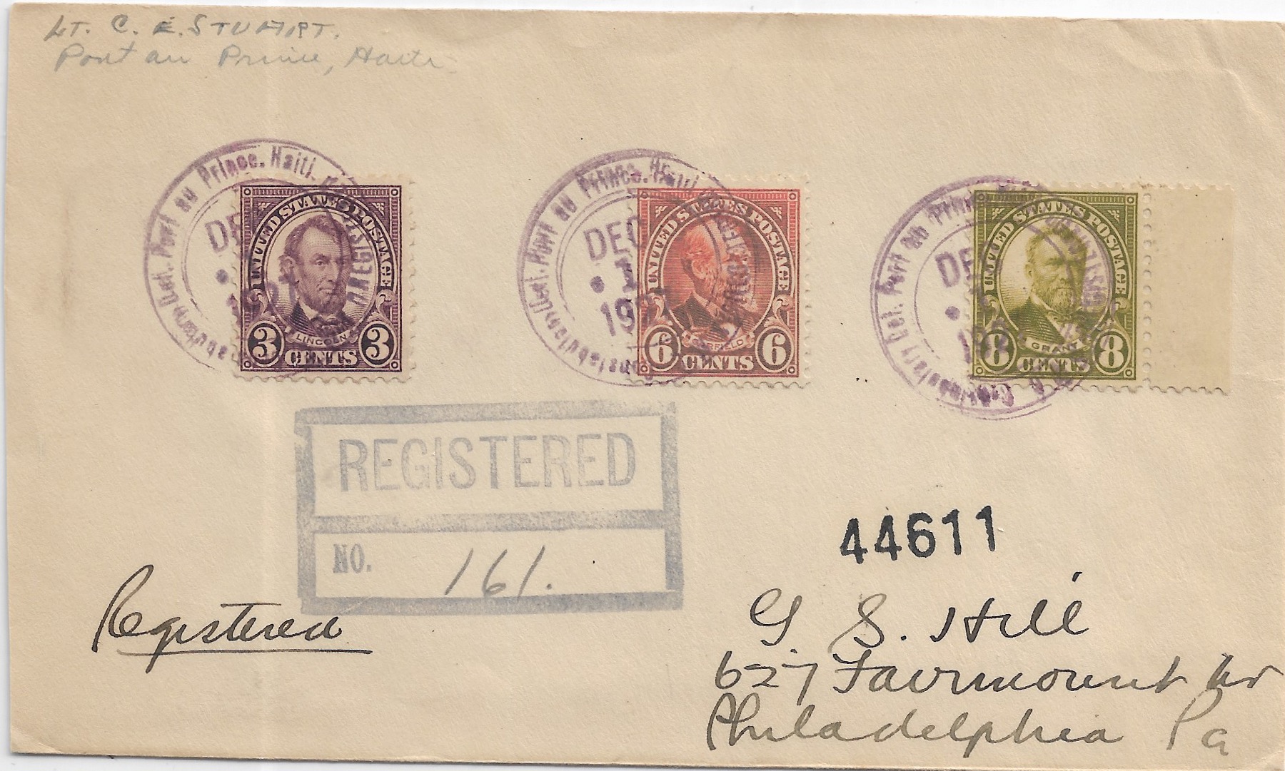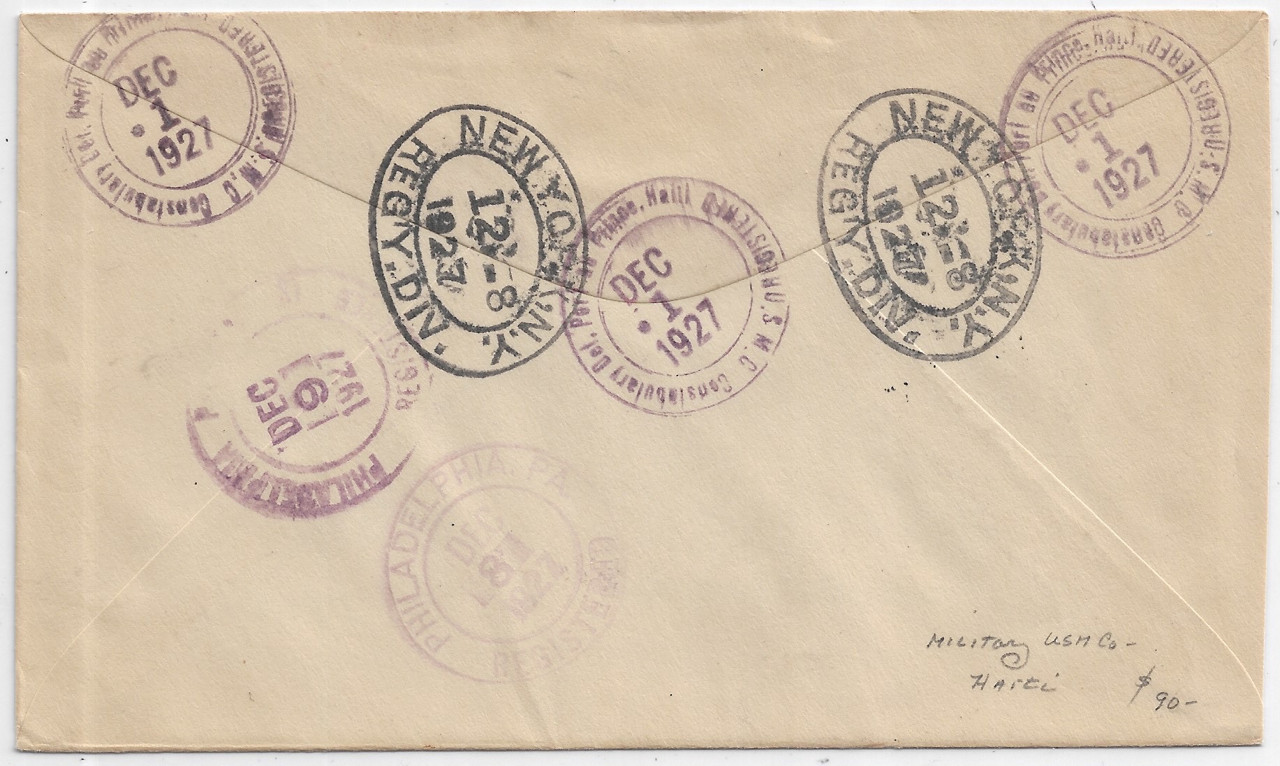 1927 USMC in Port au Prince, Haiti to Philadelphia, Pa Registered. back stamped Port au Prince, New York & Philadelphia.