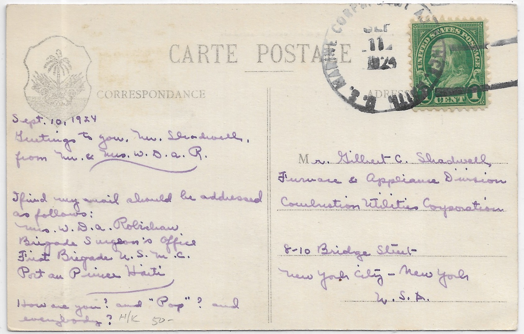 1924 USMC in Port au Prince, Haiti to New York, NY.