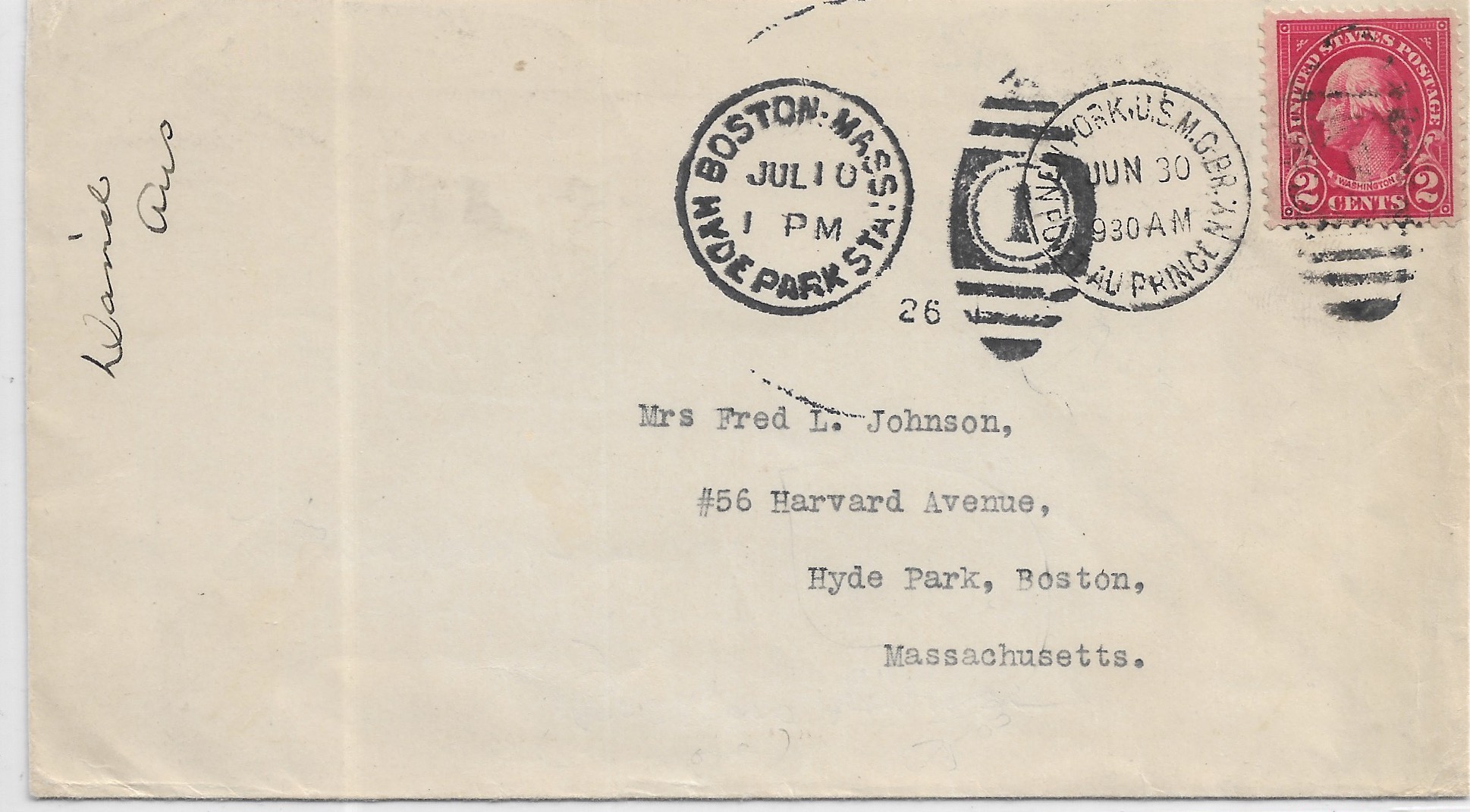 1926 USMC in Port au Prince, Haiti to Boston, Ma ( Earliest use of this Postmark).