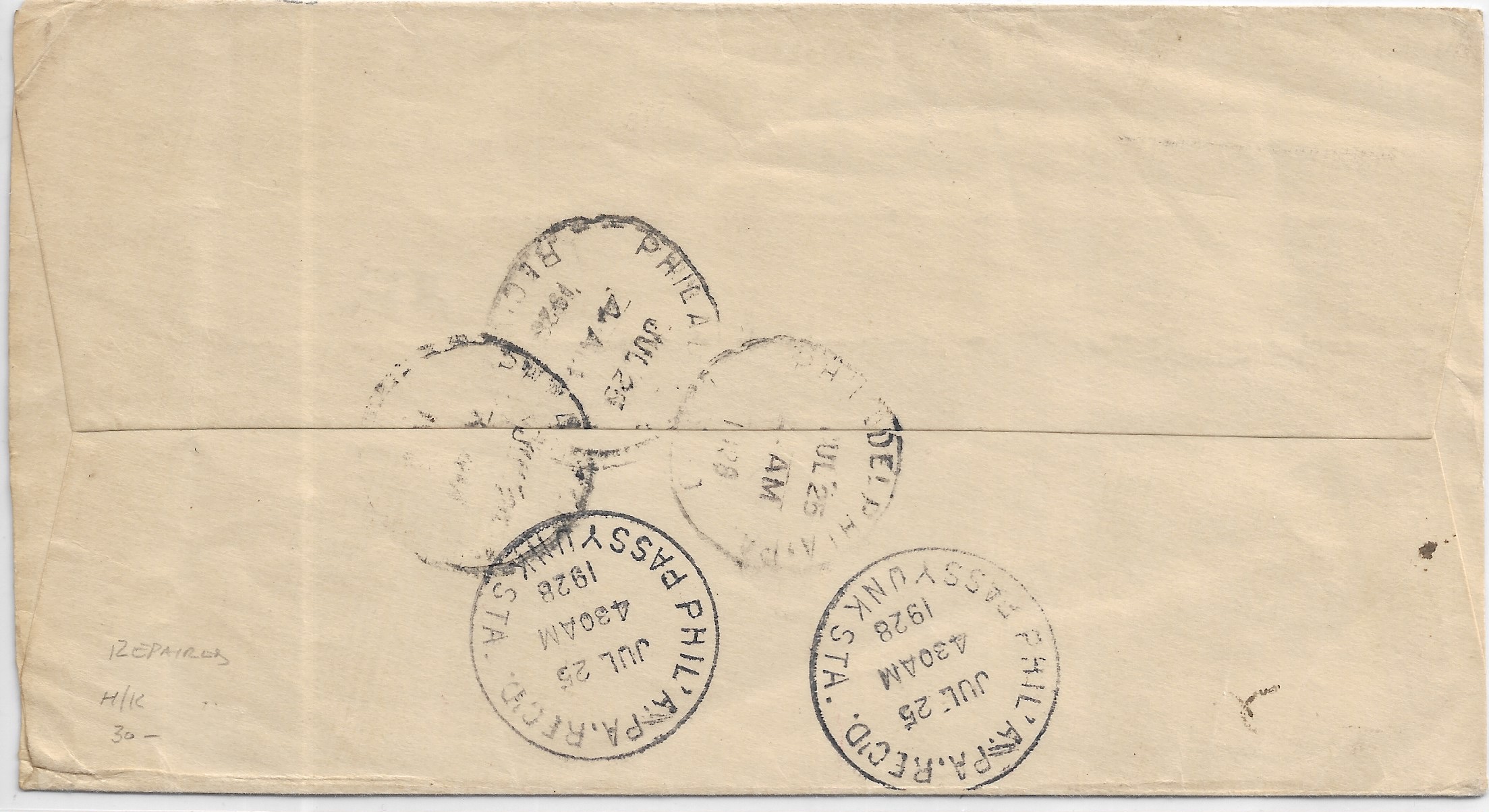 1928 USMC in Port au Prince, Haiti to USN Hospital, League Island, Philadelphia, Pa Registered. back stamped Philadelphia. THIS COVER HAS BEEN REPAIRED.