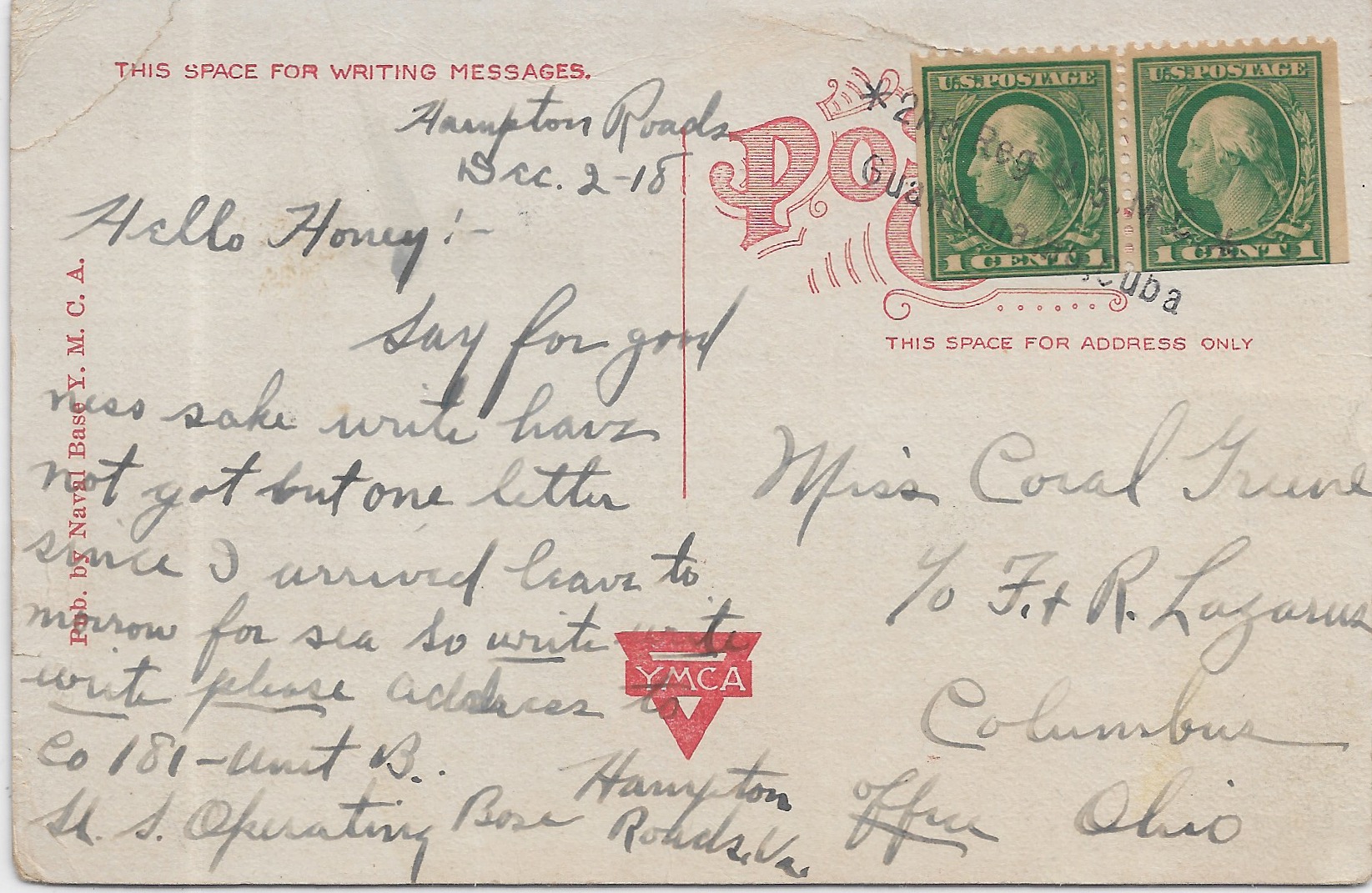 1918 USMC 2nd Regiment, Guantanamo Bay, Cuba to Columbus, OH.