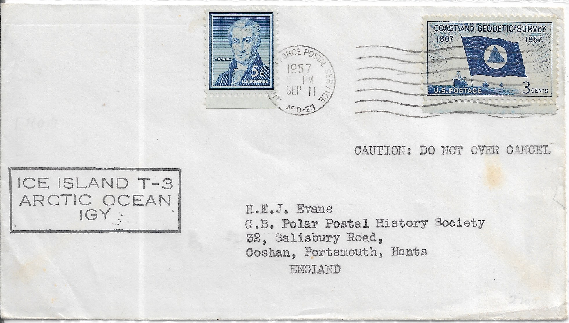 | 1957 USAF Apo-23 Ice Island T-3 Arctic Ocean IGY to Portsmouth, England. | Price: $10.00
