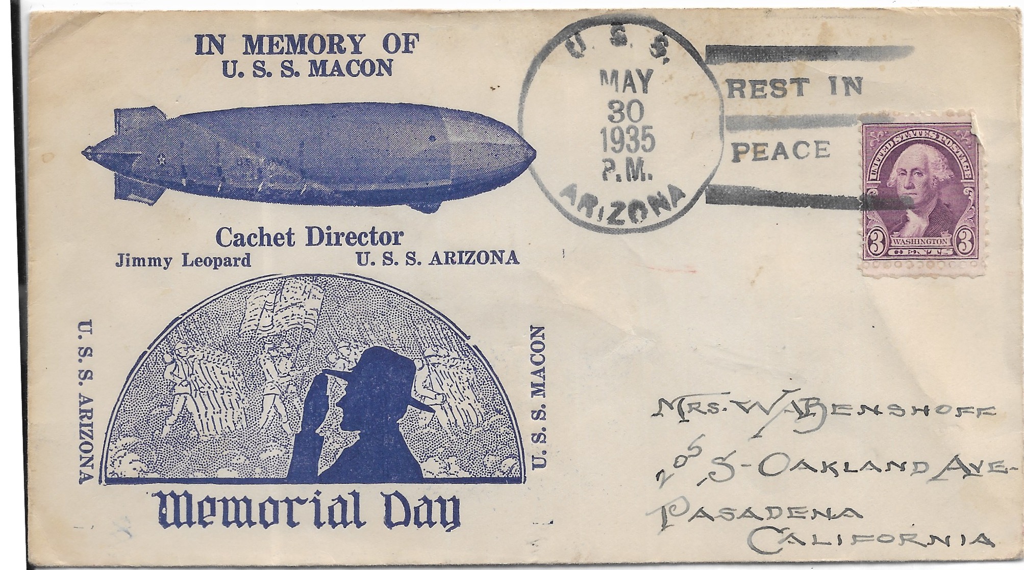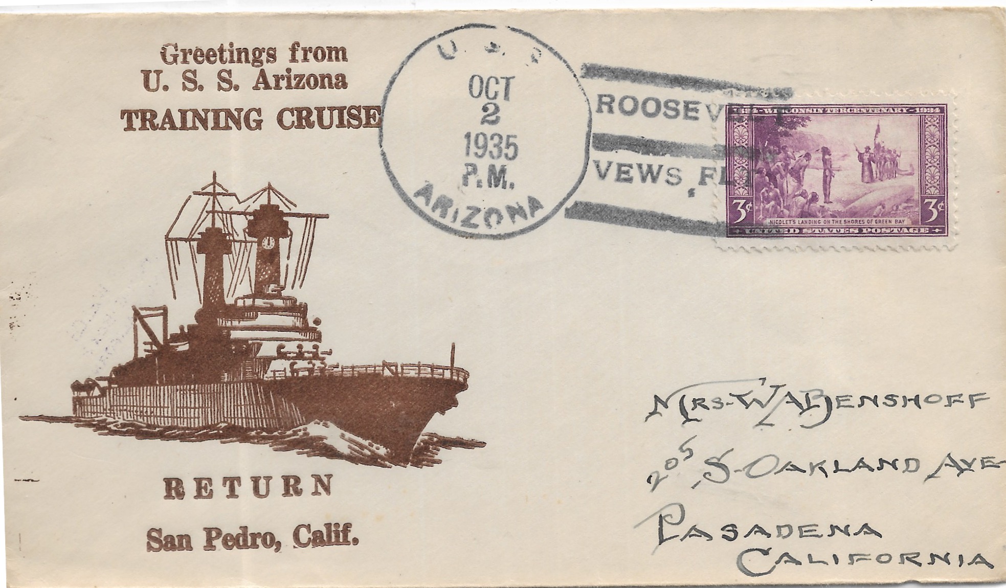 1935 USS Arizona BB-63, Memorial Day to Pasadena, Ca.