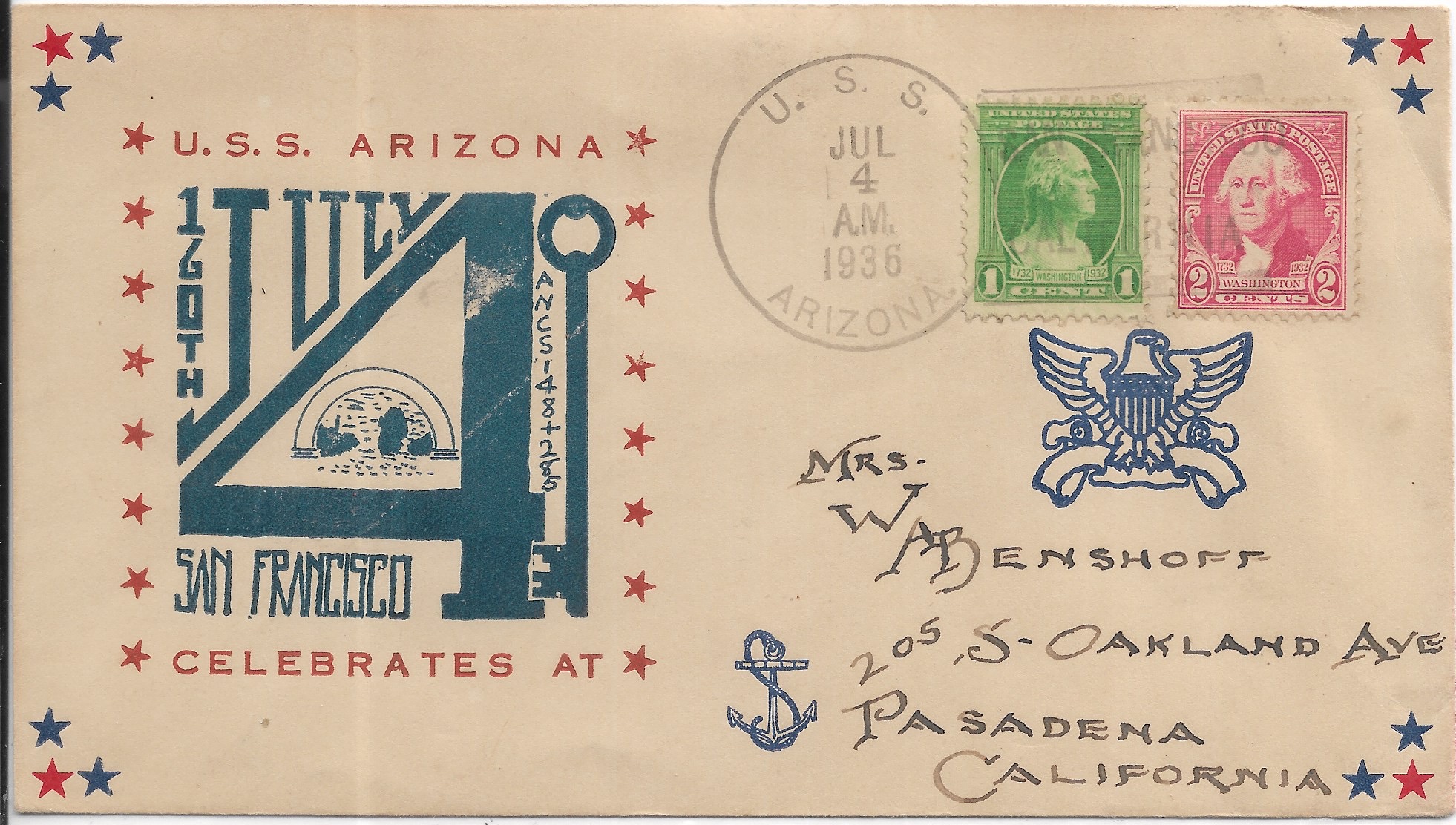 1935 USS Arizona BB-63, 4th of July to Pasadena, Ca.