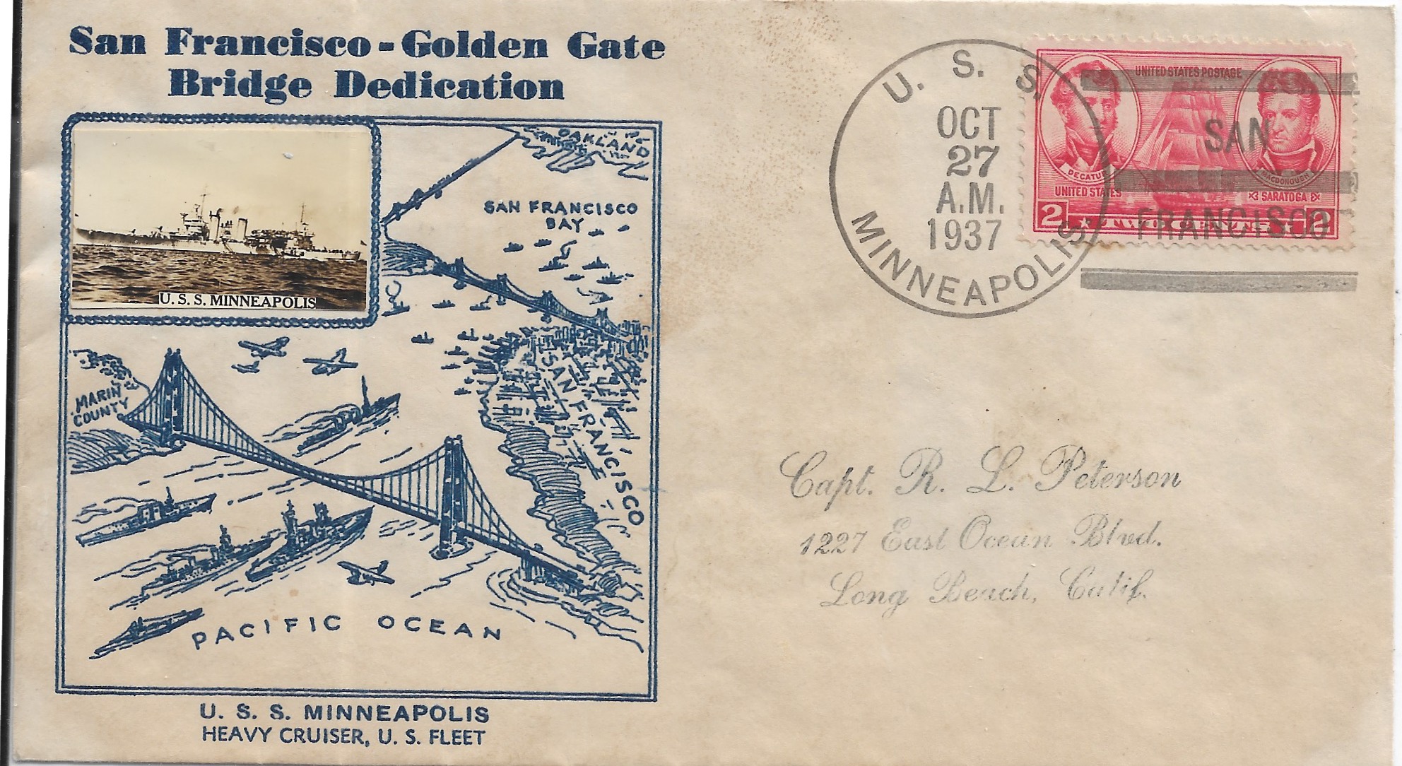 1937 USS Minneapolis CA-36, Golden Gate Bridge Dedication to Long Beach, Ca.