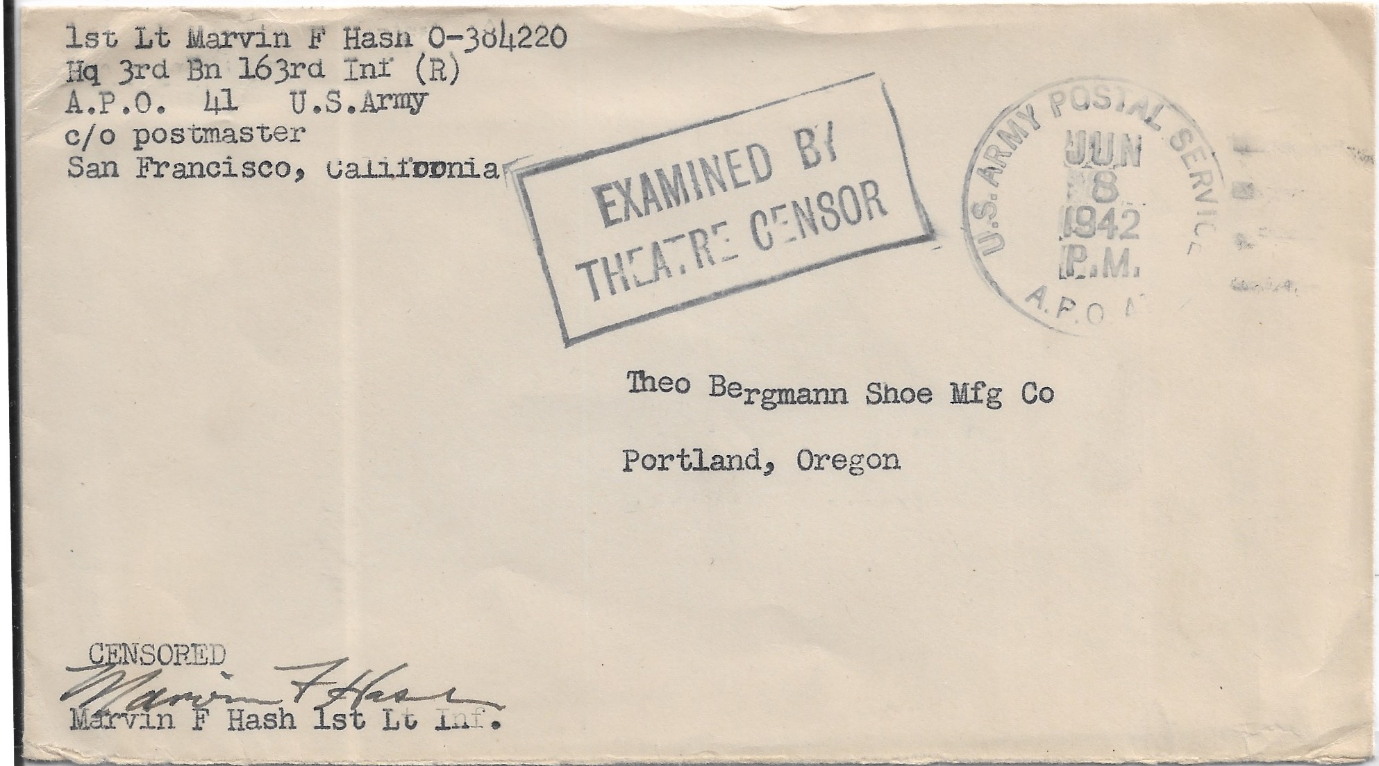 1942 APO 41, 41st Div Australia to Portland, Or Theater censor.