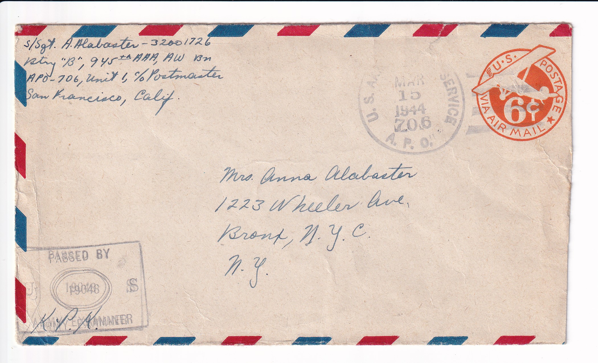 WW2: APO 815 (Eritrea) to Okland, Ca 1945.