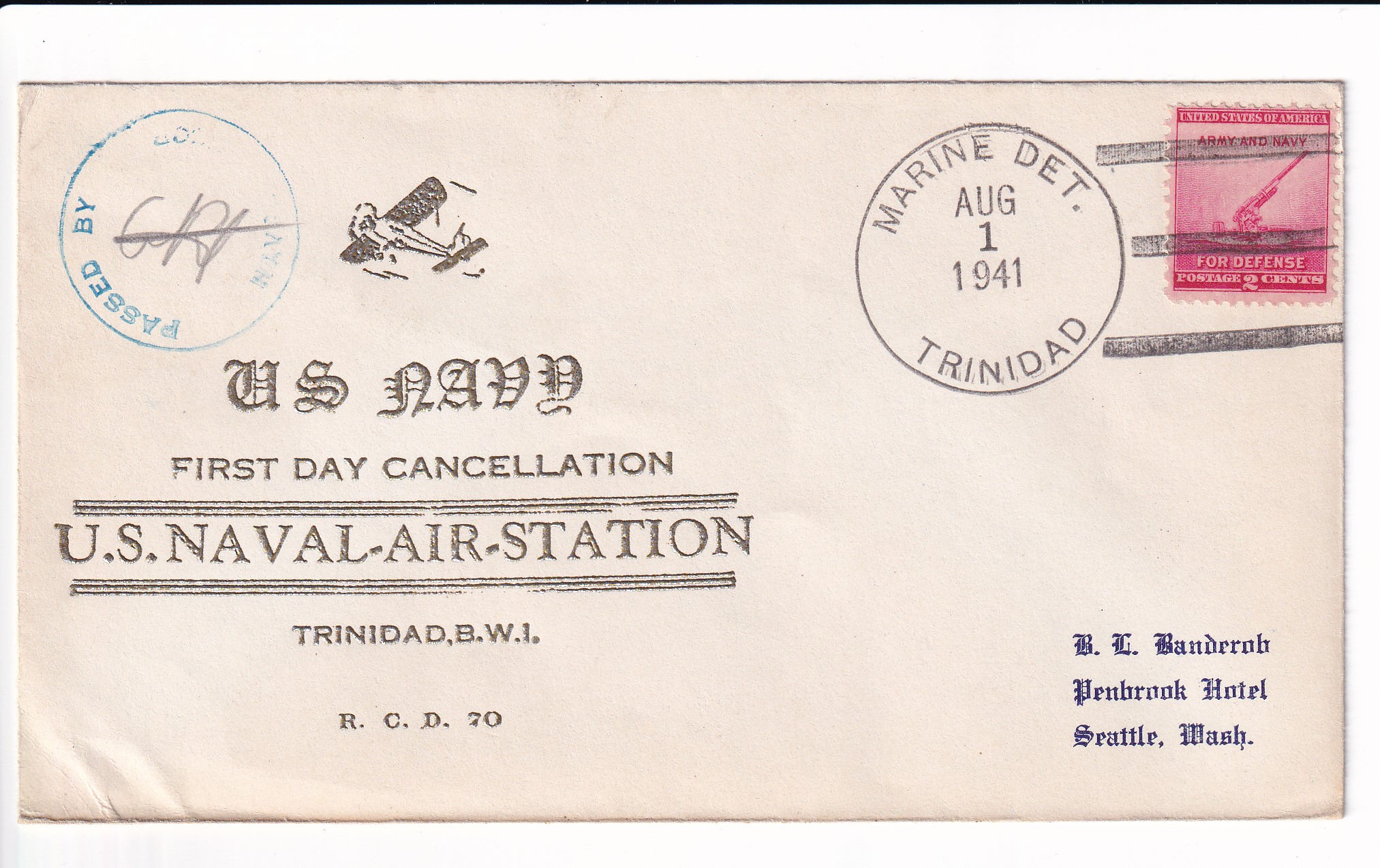 1941 1st Day Cancellation Marine Detachment, Trinidad to Seattle, Wa.
