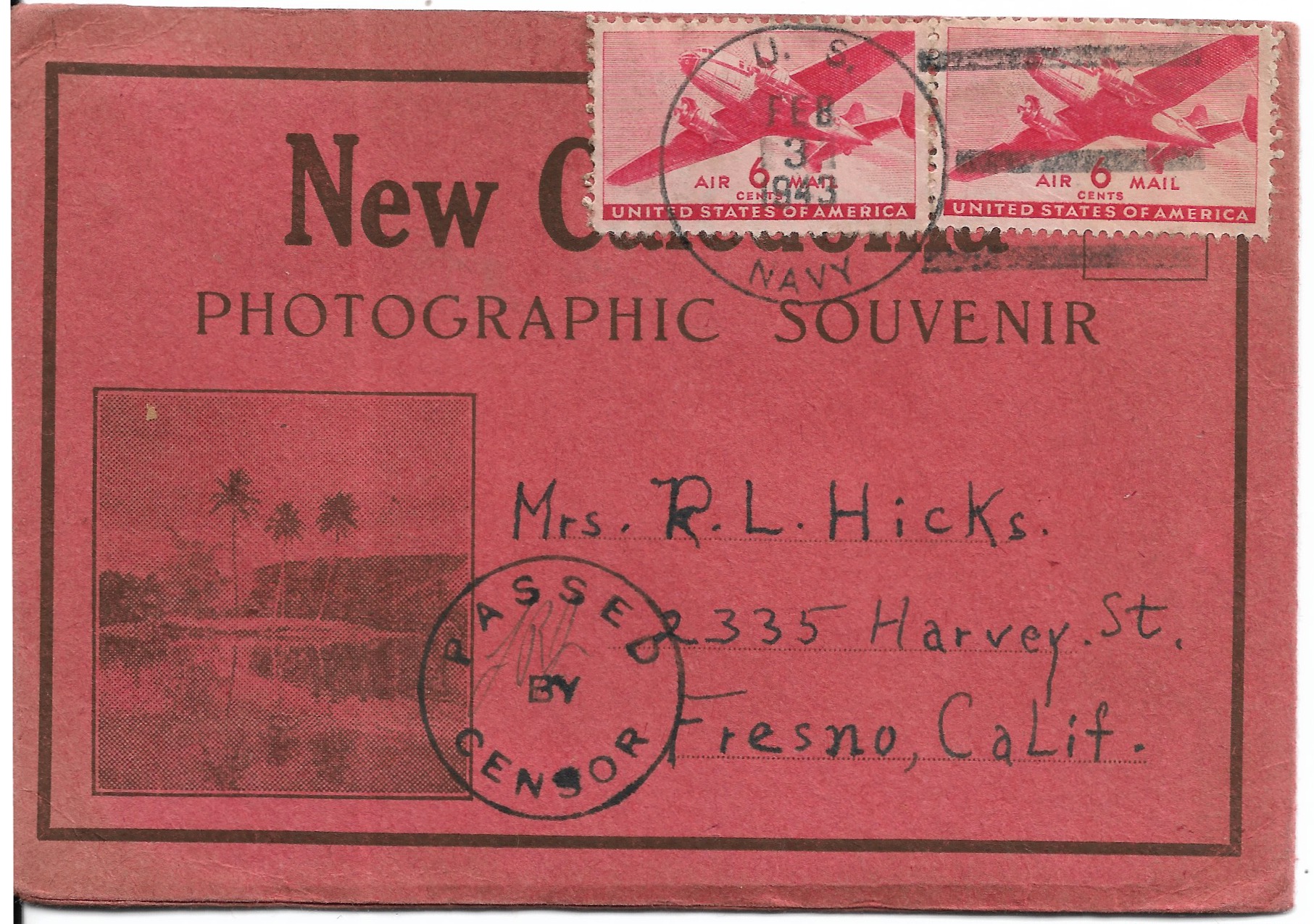 1943 U.S. Navy, New Caledonia to Fresno, Ca Photographic Souvenir, Censored.