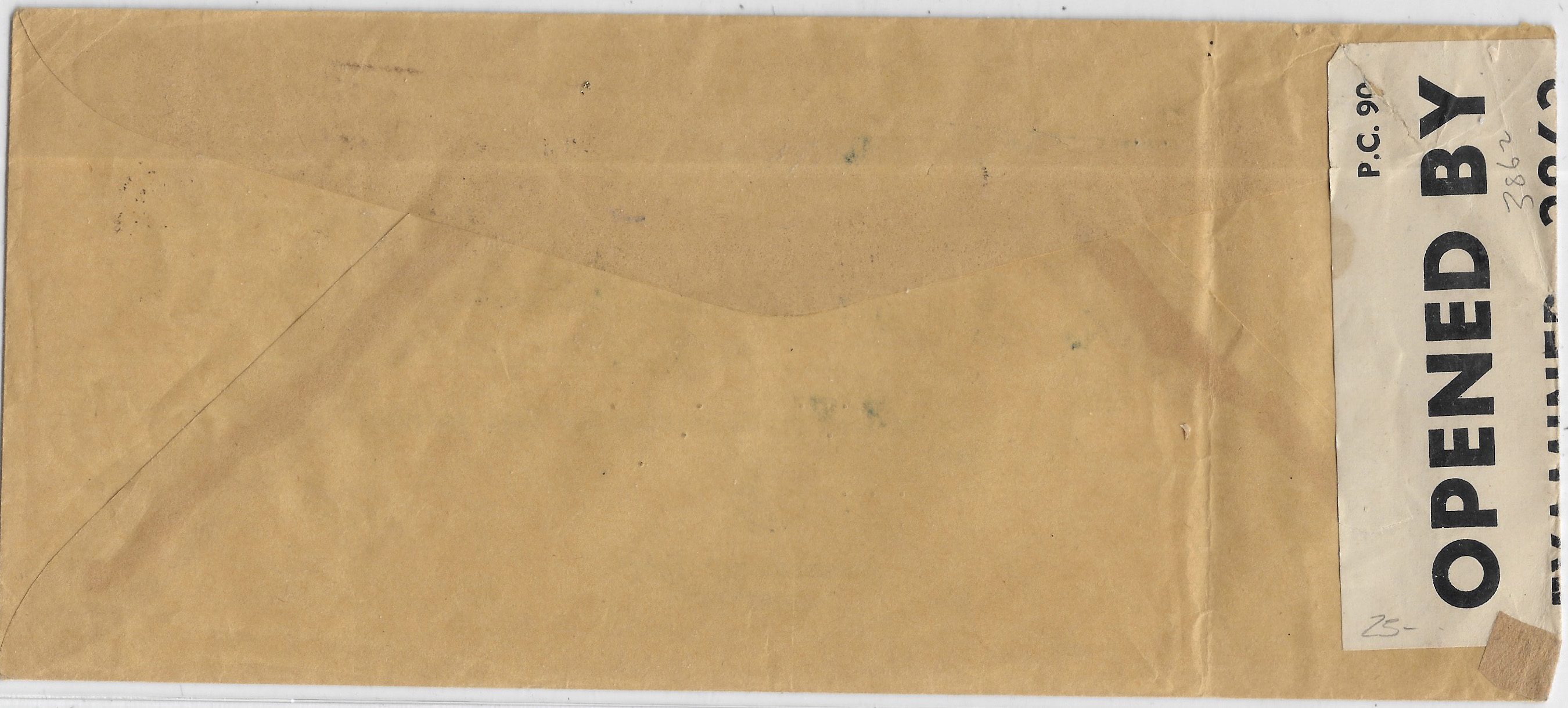 1944 New York, NY to Bombay, India Censored (Overrun Country Series). #12 back stamped Bombay.