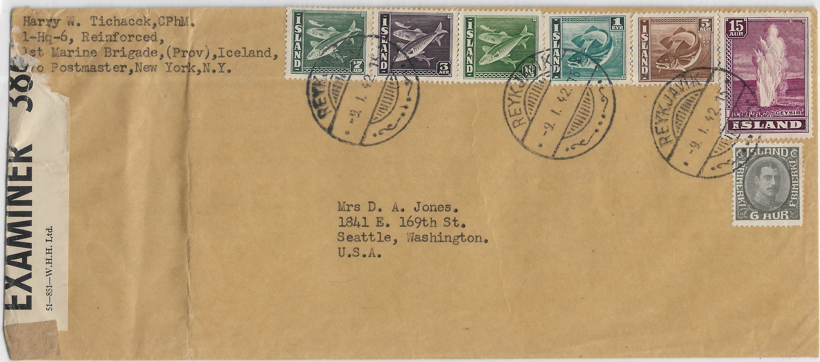 1942 USMC, 1st Brigade, Iceland to Seattle, Wa Censored.