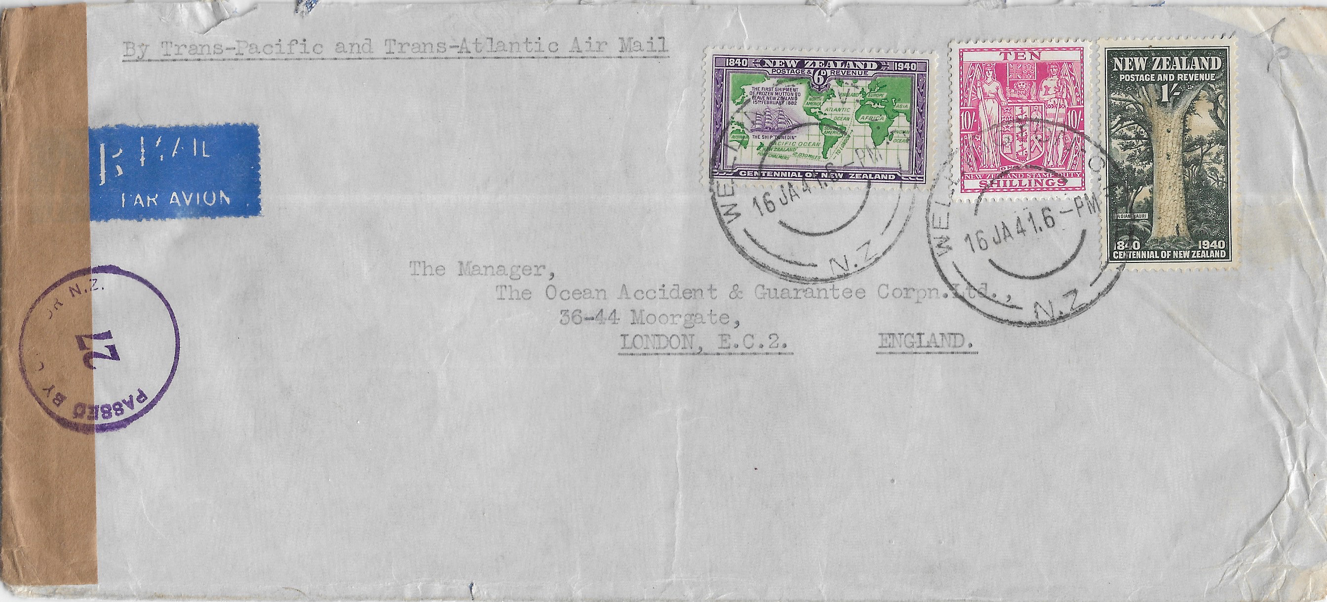 1941 Wellington, NZ to London, England Trans-Pacific - Trans-Atlantic Clipper.