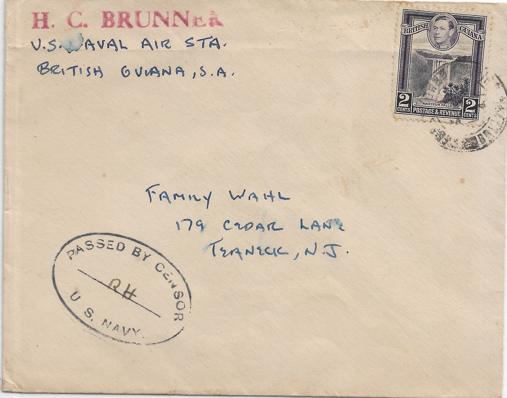 194x Naval Air Station, Georgetown British Guiana to Teaneck, NJ U.S. Navy Censor h/s.