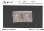 | 1c Washington Coil Line Pair, Sc #448, MNH. | Price: $102.00