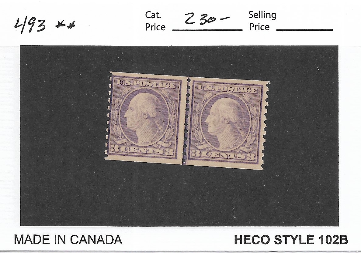 | 3c Washington Coil Line Pair, Sc #493, MH. | Price: $66.00