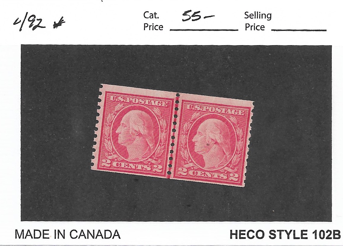 | 2c Washington Coil Line Pair, Sc #492, MH. | Price: $25.00