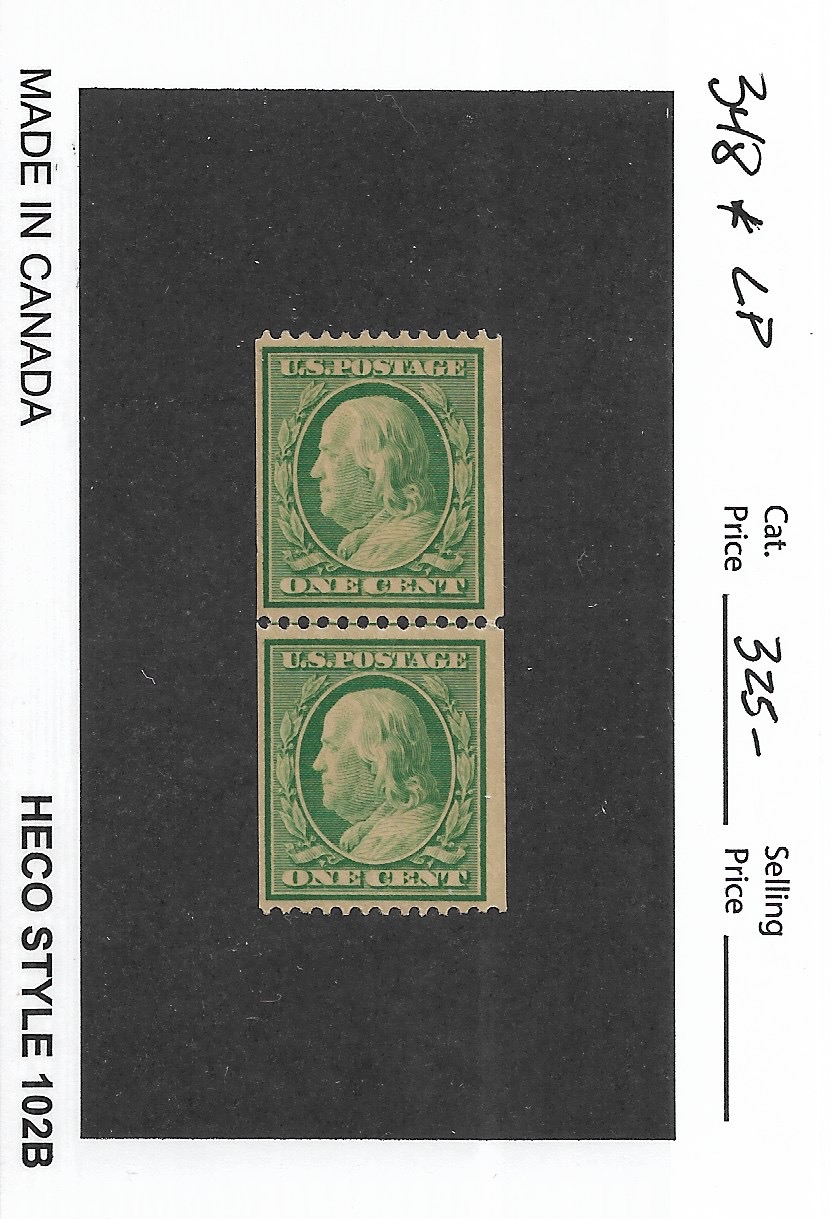 | 1c Franklin Coil Line Pair, Sc #348, MH. | Price: $195.00